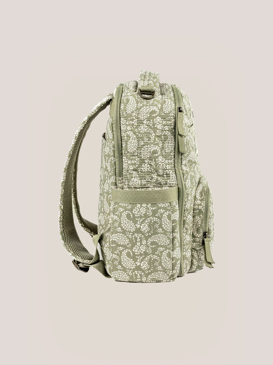 Pockets? Check. Tons of room? Check. So stylish it turns heads? Check. The Classic Backpack diaper bag from Sazan Hendrix + JuJuBe has it all! From an easy-access wipe pocket and insulated bottle pocket to a quick-reach cell phone pocket and a cushioned changing pad, the Classic Backpack is full of intuitively designed features that make parenthood easier. The contoured shoulder straps are comfy, and the trolley sleeve and stroller straps make travel easy. Made with durable and machine-washable 100% cotton canvas in a cute floral paisley print, plus a neutral gingham lining, this bag adds a handmade charm for the baby years and beyond. Wherever life takes you and your little one, you can stop stressing and start making memories!