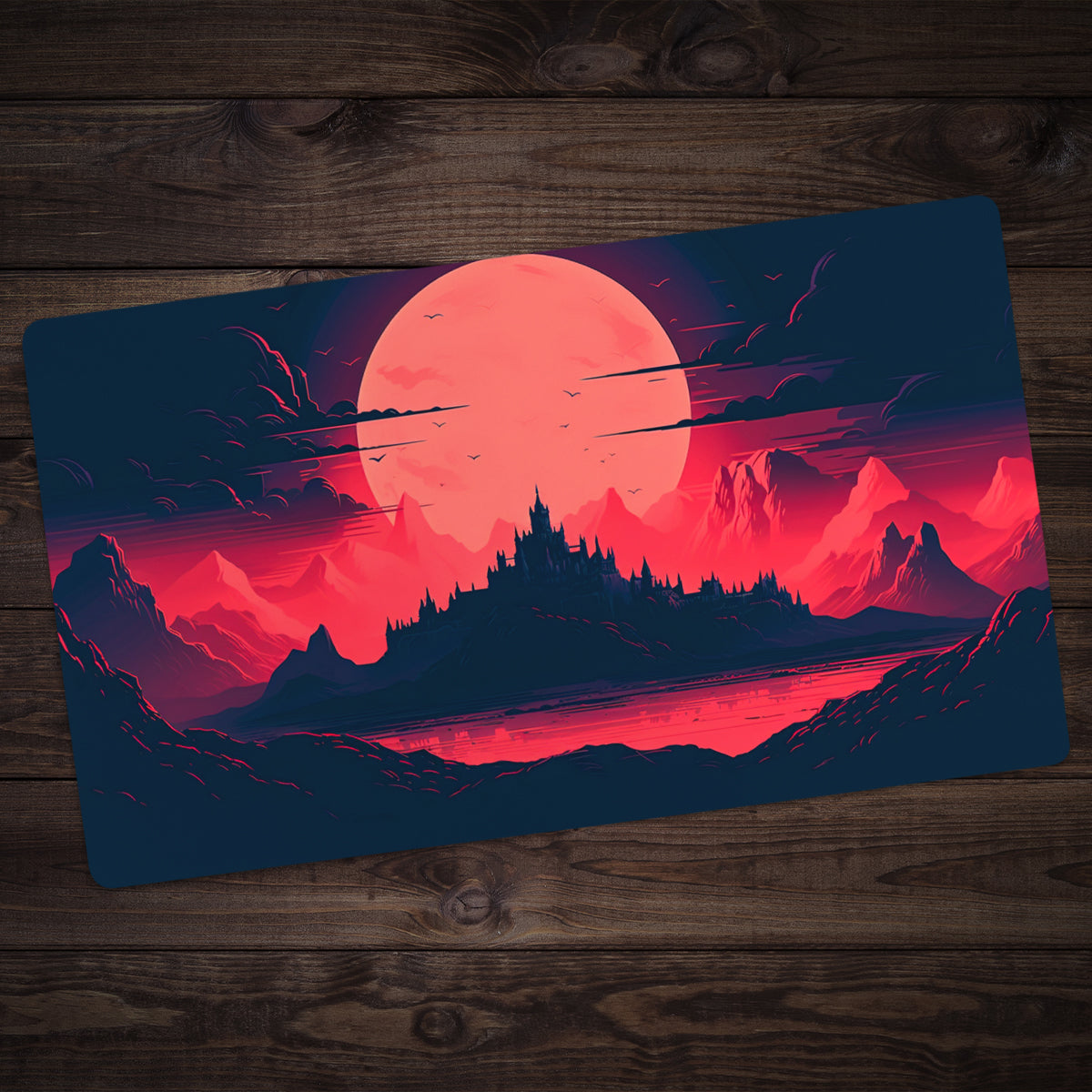 Oversized Playmat measures at 28” x 14” inches and is 1/16 of an inch thick. It’s made with a smooth cloth top and strong rubber backing.