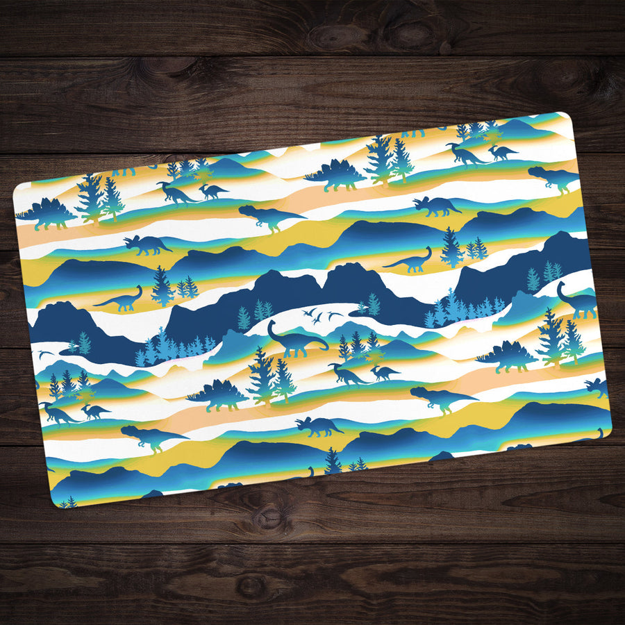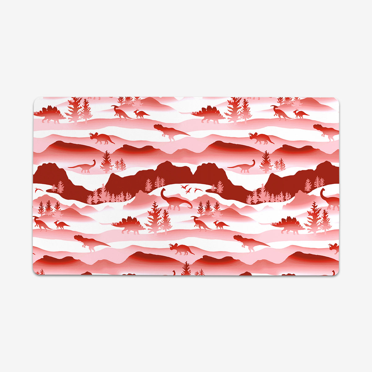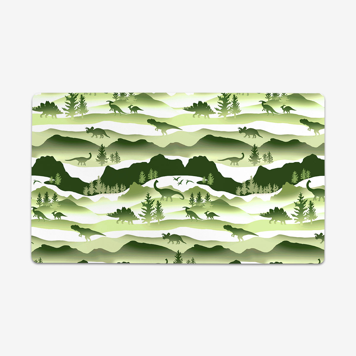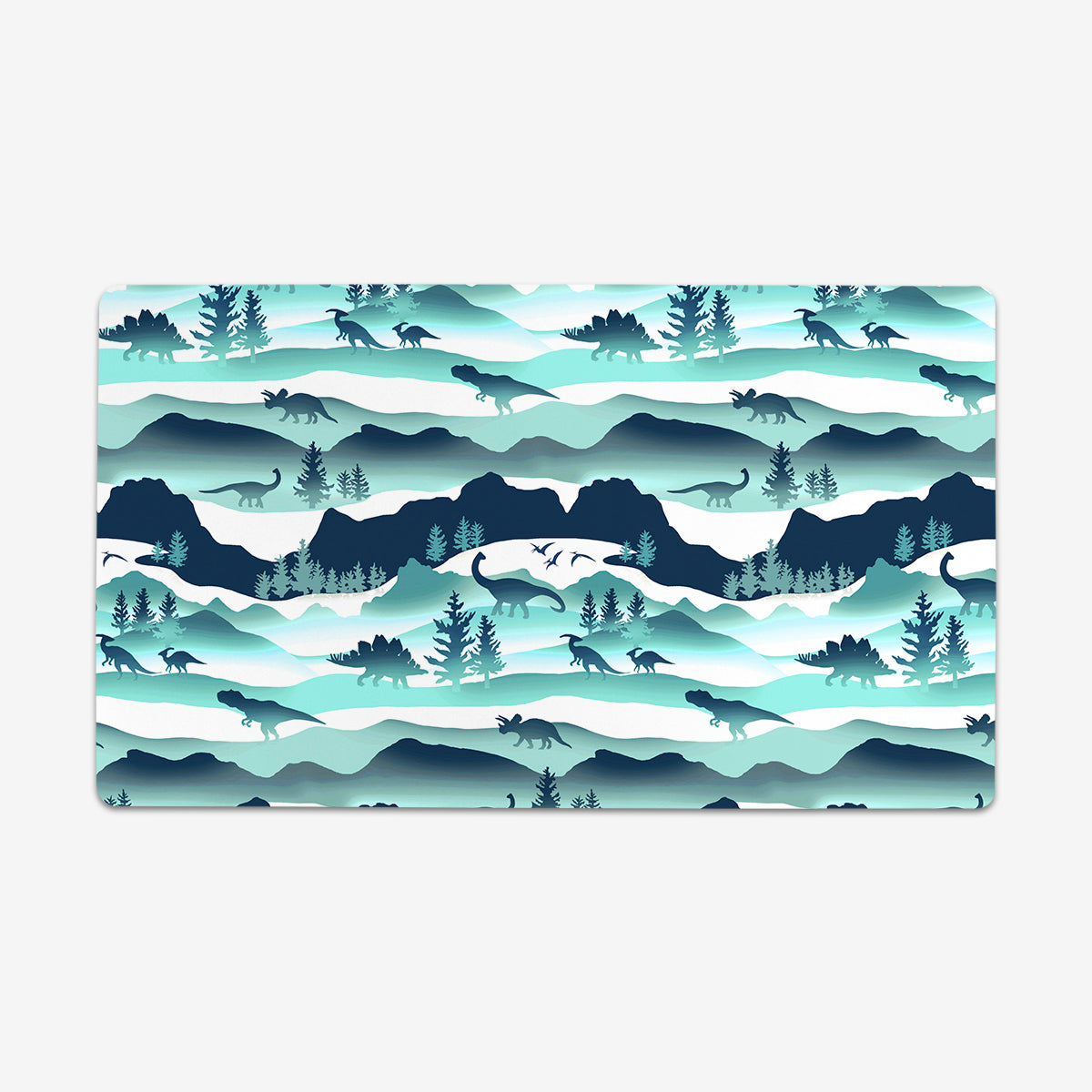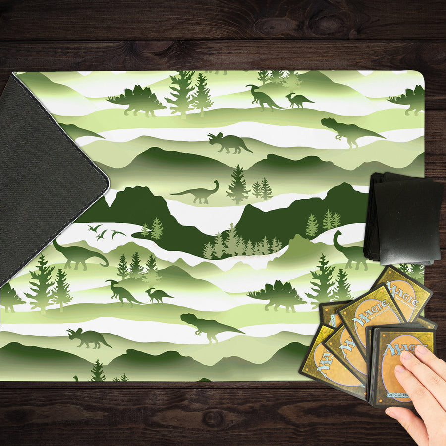 Oversized Playmat measures at 28” x 14” inches and is 1/16 of an inch thick. It’s made with a smooth cloth top and strong rubber backing.