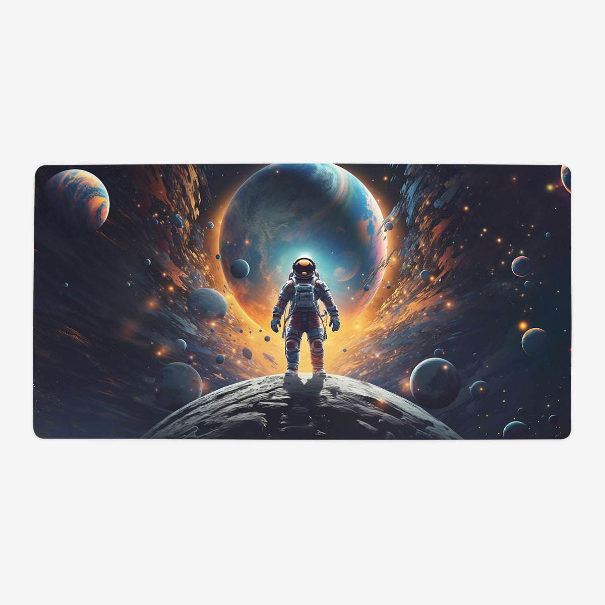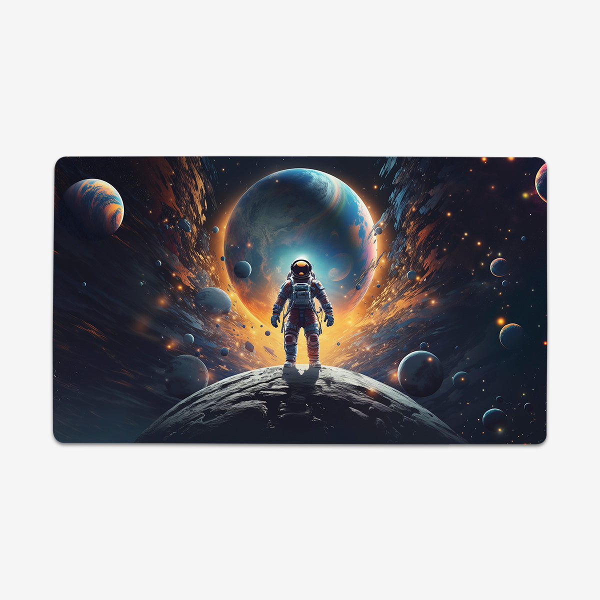 Oversized Playmat measures at 28” x 14” inches and is 1/16 of an inch thick. It’s made with a smooth cloth top and strong rubber backing.