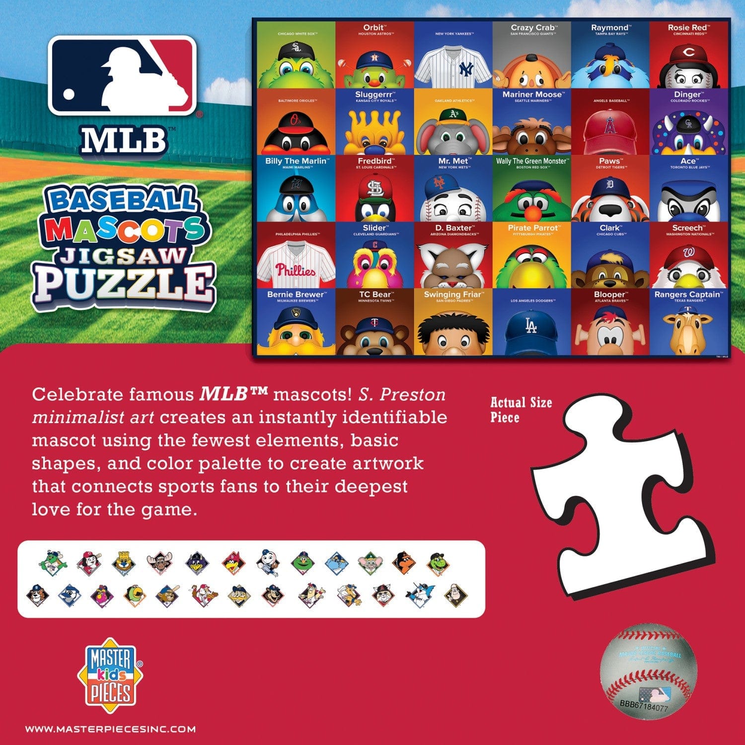 Celebrate the famous mascots of the MLB with this puzzle by MasterPieces! This 100pc kids puzzle features art by S. Preston. Finished puzzle size is 19" x 14"and is perfect for ages 6 and up.