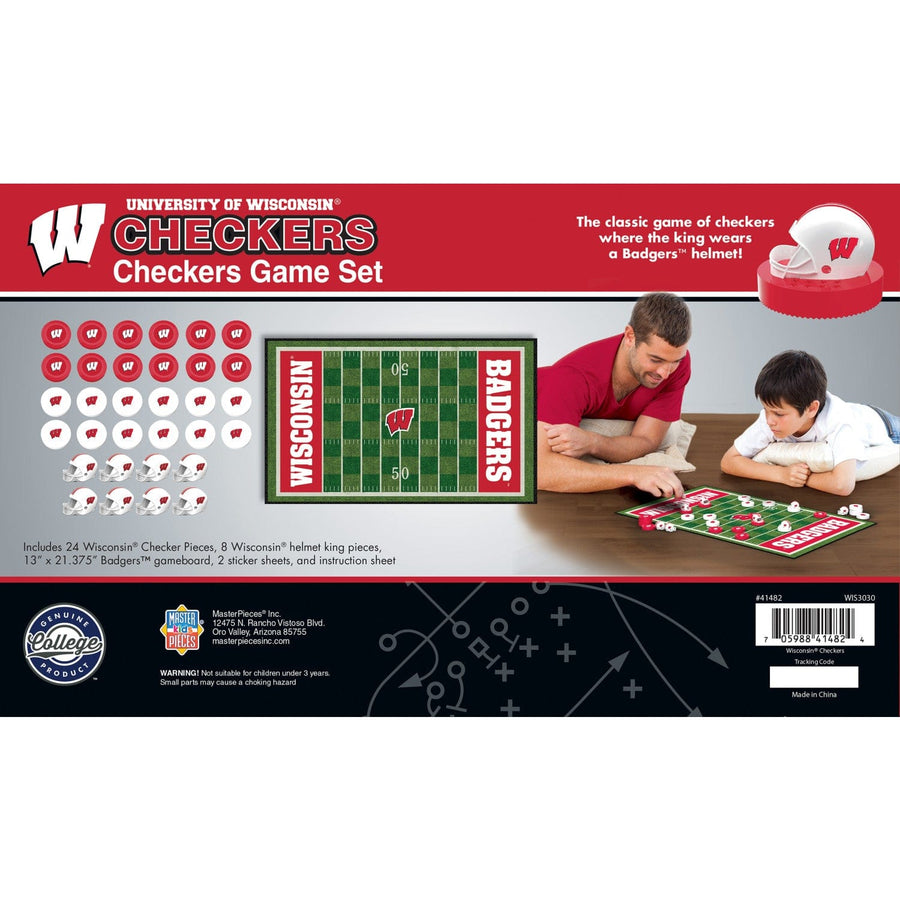 If you're a fan of the Wisconsin Badgers, then you're going to love this officially licensed MasterPieces NCAA Wisconsin Badgers Checkers Board Game. This classic game of checkers is a ton of fun for children and adults ages 6 and up, and it's a great way to show your Wisconsin Badgers pride. This checkers game comes with 24 Wisconsin Badgers checkers pieces, 8 helmet king pieces, a 13 inches x 21.375 inches game board, 1 sticker sheet, and an instruction sheet. So get ready to put your skills to the test and crown yourself the checkers champion!