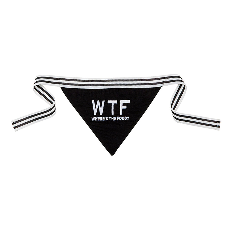 WTF - Where's The Food? Pet Bandana in Black | Cotton Pet Accessory | 9" x 6"