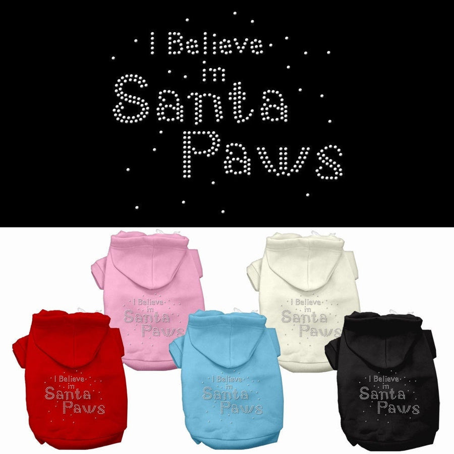 Christmas Pet Dog & Cat Hoodie Rhinestone, "I Believe In Santa Paws"