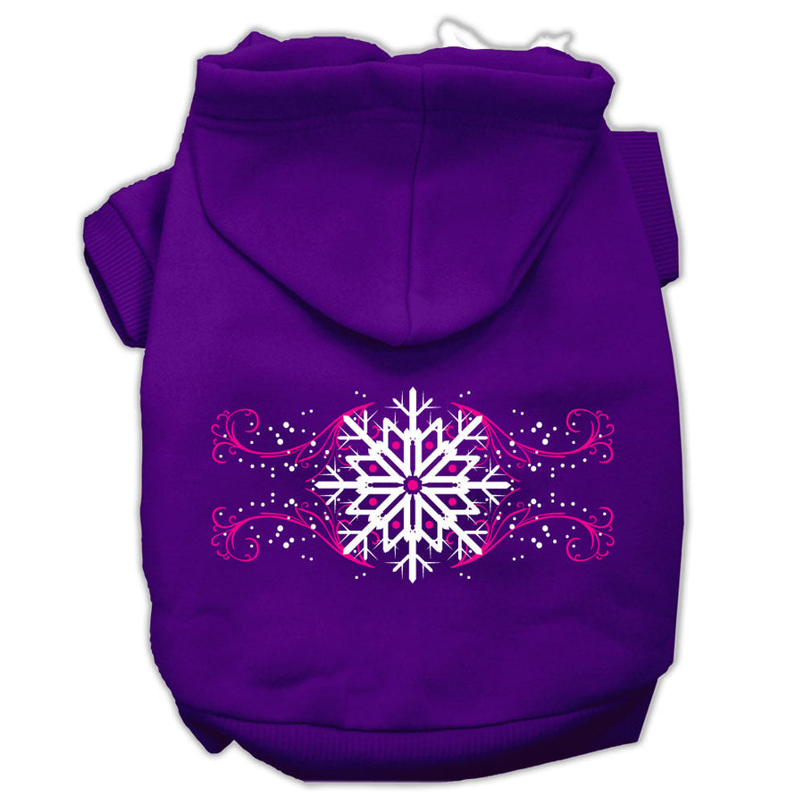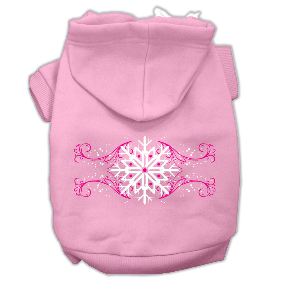 Christmas Pet Dog & Cat Hoodie Screen Printed, "Pink Snowflake Swirls"