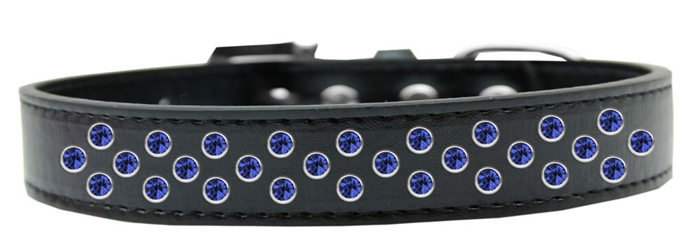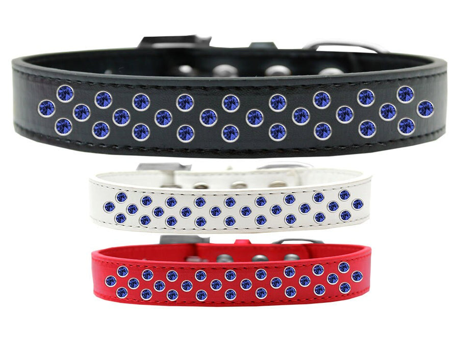 These stellar 3 Row Crystal Collars, which we lovingly call our "Sprinkles" line are a faux leather, featuring crystals around the outside. This collar is available in multiple collar/stone colors, and an array of sizes. These soft collars are 3/4" wide and features three sprinkled rows of crystal stones.