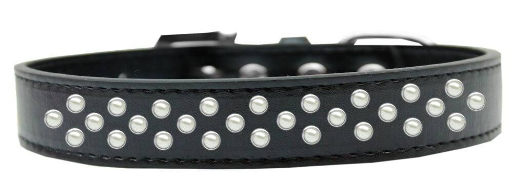 These stellar 3 Row Crystal Collars, which we lovingly call our "Sprinkles" line are a faux leather, featuring crystals around the outside. This collar is available in multiple collar/stone colors, and an array of sizes. These soft collars are 3/4" wide and features three sprinkled rows of pearl stones.
