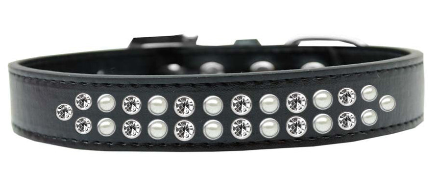 Dog, Puppy & Pet Fashion Collar, "Two Row Pearl And Clear Crystal Rimsets"