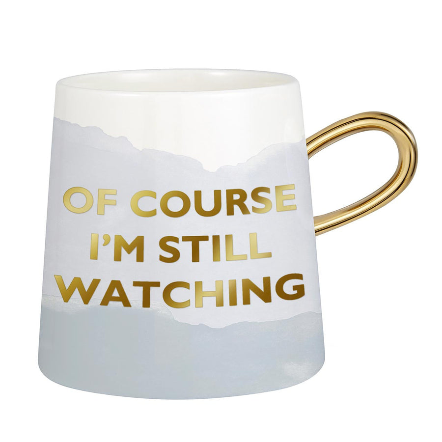 Whether you're binge-watching your favorite show or enjoying a morning coffee, this 11 oz tapered mug in white and blue watercolor is the perfect companion for your TV marathon sessions. With the phrase "Of Course I'm Still Watching" in elegant gold lettering, this ceramic mug is an ideal gift for birthdays, holidays, or simply to show a friend or family member you care.
