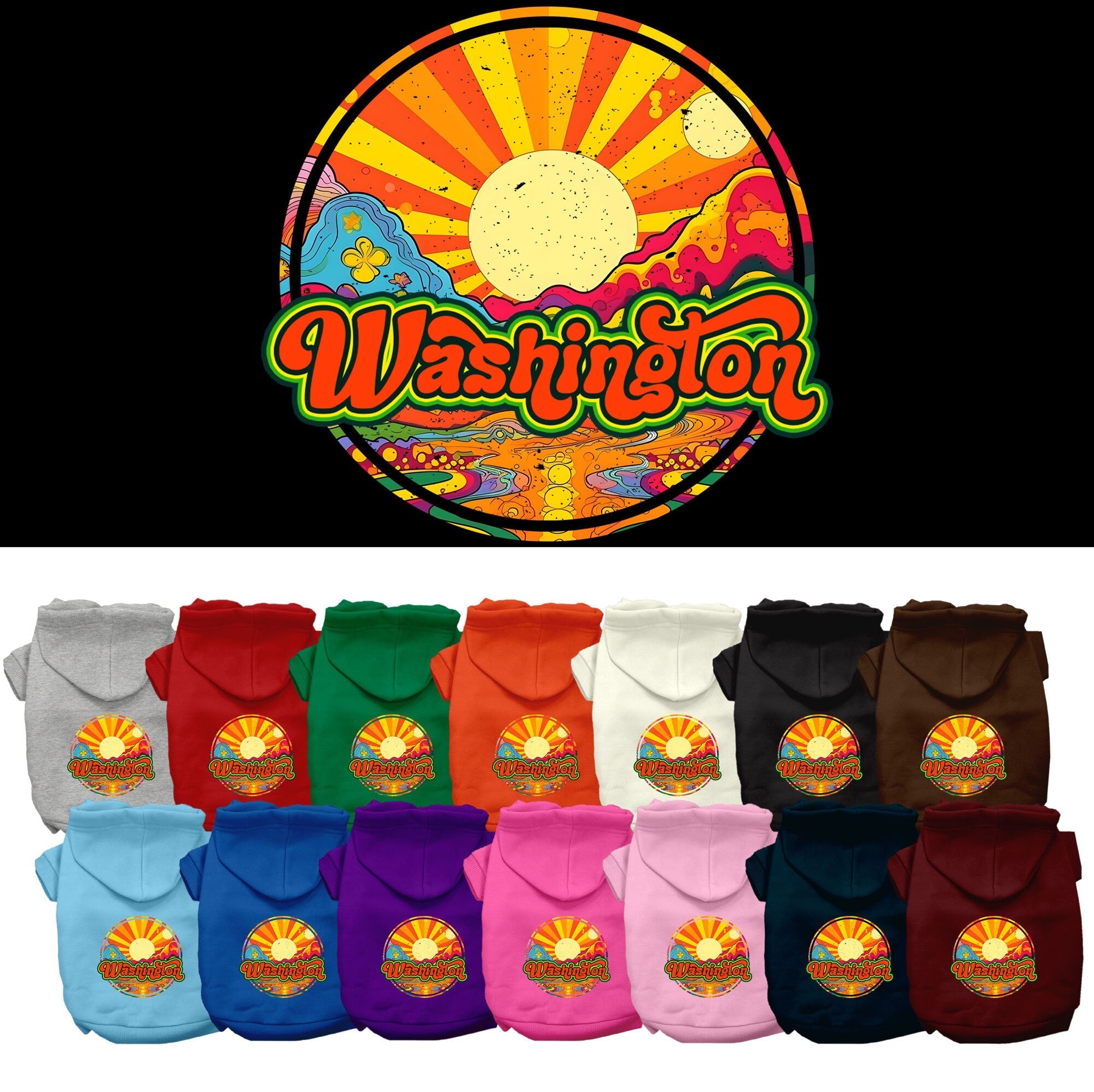 Pet Dog & Cat Screen Printed Hoodie for Small to Medium Pets (Sizes XS-XL), "Washington Mellow Mountain"