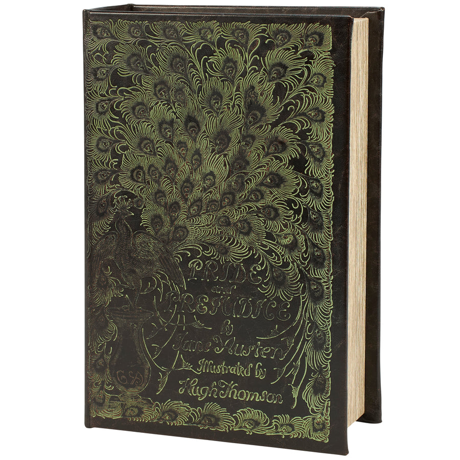 Pride And Prejudice book box can be used upright on a bookshelf or laid flat with the cover open displaying decorative accents inside.