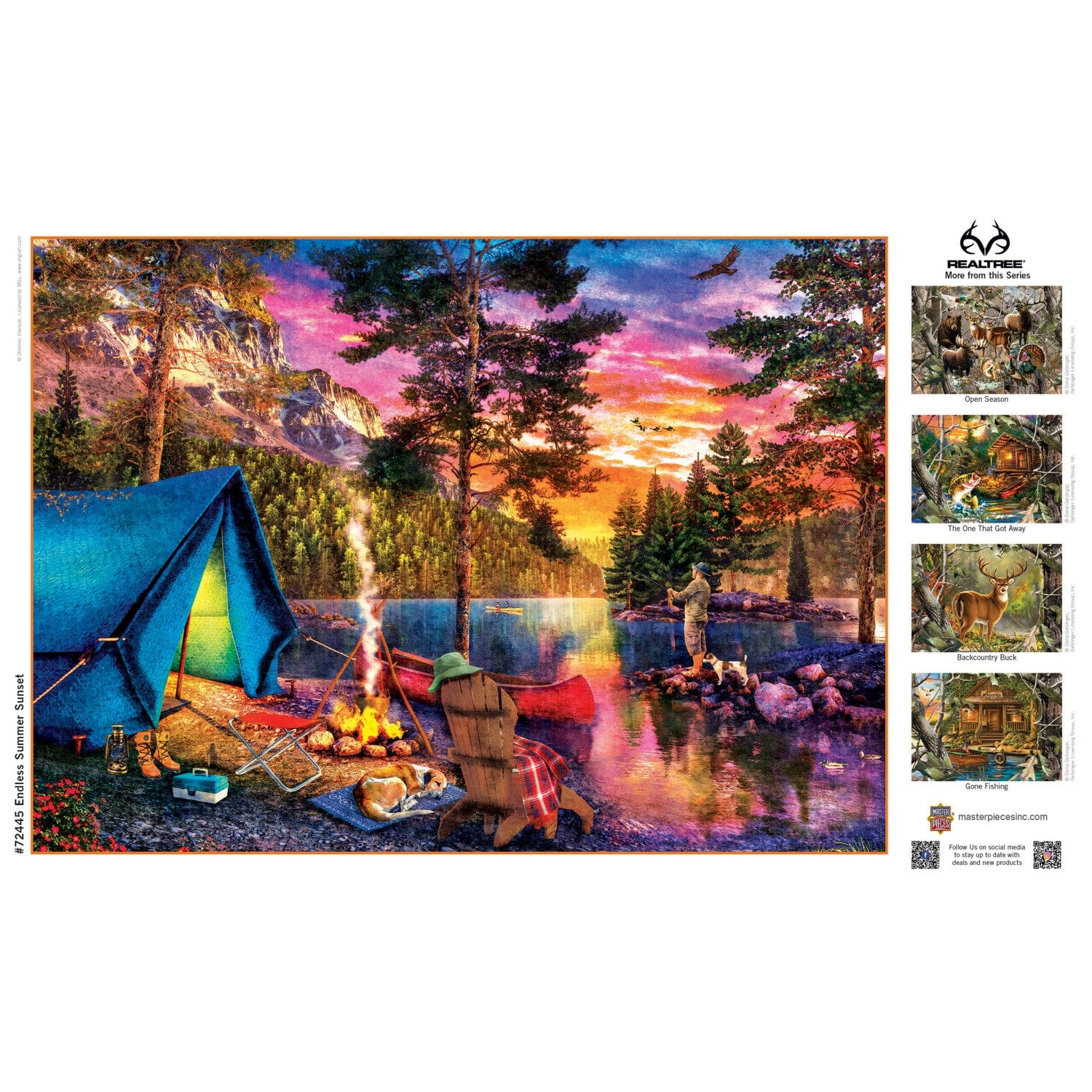 Dive into the heart of nature with our 1000 piece jigsaw puzzle for adults, capturing the pure, unspoiled beauty of a summer evening. This officially licensed Realtree product is a masterpiece that evokes the essence of outdoor adventures. Assemble a breathtaking view of a campfire’s glow against a tranquil lake, where the colors of the sunset linger, promising memories that last a lifetime. Relive the allure of summer evenings, where stories are shared, laughter echoes, and the world seems to pause. Crafted from thick recycled puzzle board, this puzzle ensures a tight interlocking fit with random cut pieces, creating a fun and engaging experience. Measuring 19.25 inches by 26.75 inches when completed, it’s perfect for tabletop play. This jigsaw puzzle is designed for adults, offering a challenging yet rewarding experience that enhances problem-solving skills and spatial awareness. Proudly made by MasterPieces, an American Puzzle & Game Company, we ensure your enjoyment with every piece. Whether you're a fan of camping jigsaw puzzles or seeking a summer-themed puzzle, this 1000 piece wildlife puzzle for adults is a perfect choice. Embrace the tranquility of nature and build your sanctuary with this captivating puzzle.