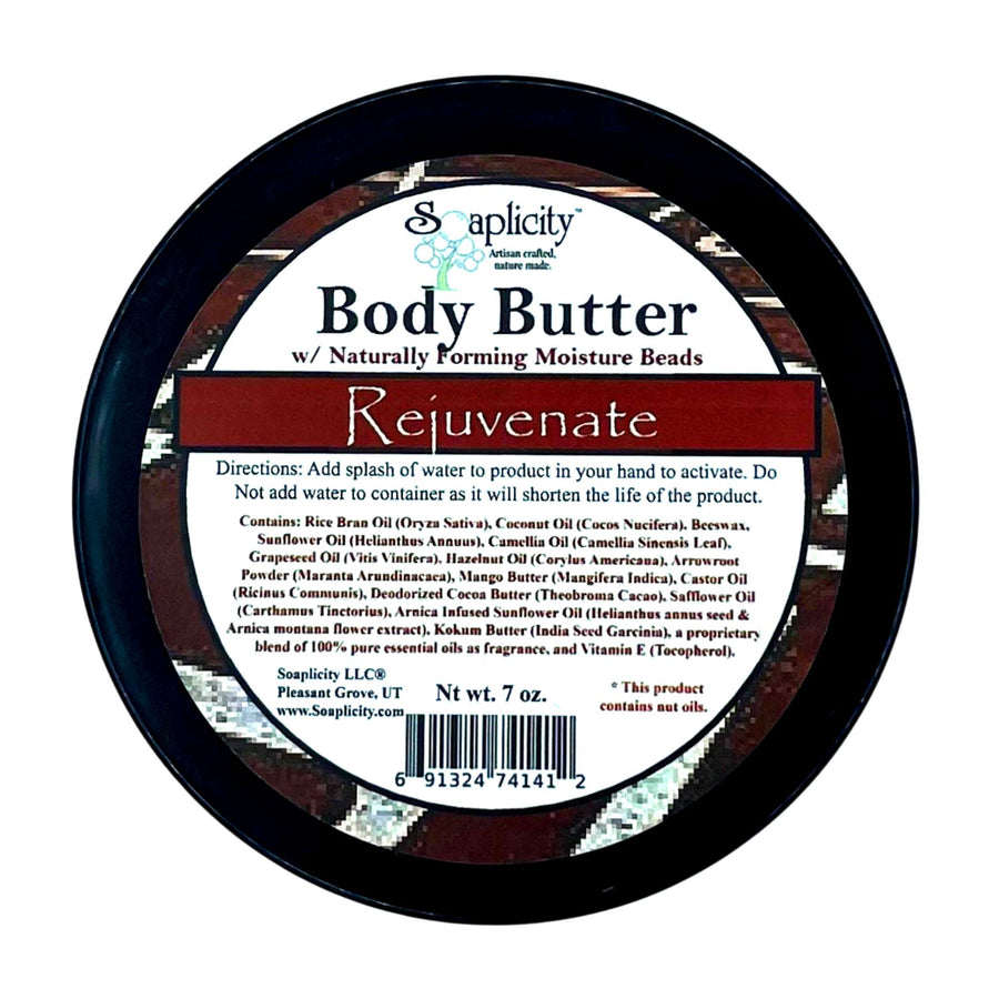 Like all of our body butters, Rejuvenate is ingeniously formulated as a concentrate to be used right out of the shower or tub while you are still dewy to deeply penetrate the dermal layers and hydrate all day long. It is 100% natural and made with only the finest, sustainable oils and butters. Naturally forming moisture beads develop over time that subdue itchy skin, then melt to lock in moisture. Absolutely decadent!