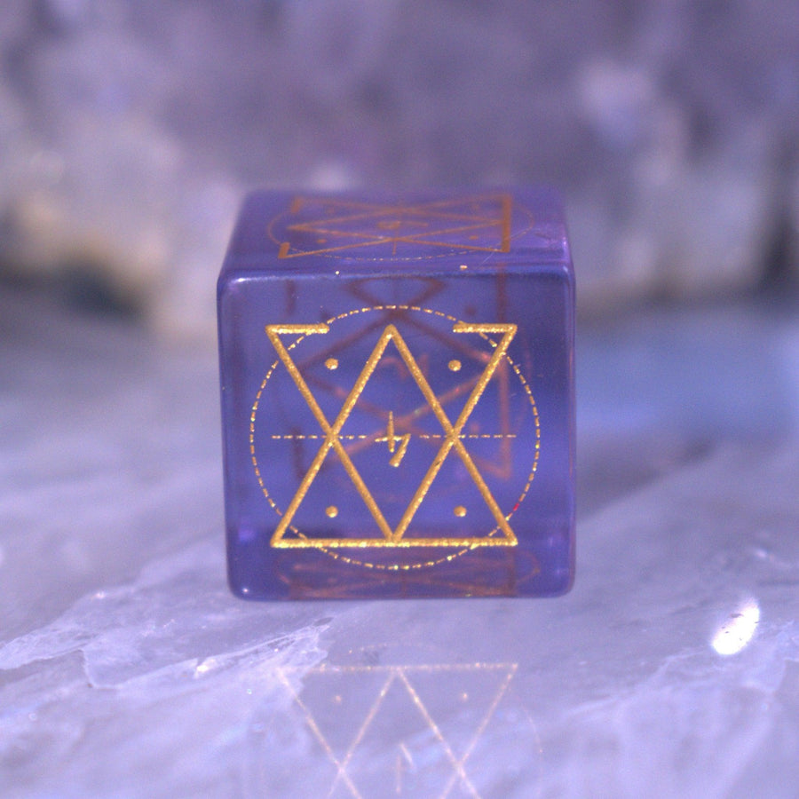 Each die is hand carved from glass pieces and polished in a proper tumbler. Designs are then engraved into each side and hand painted. Our dice sets are always well weighted and well balanced.