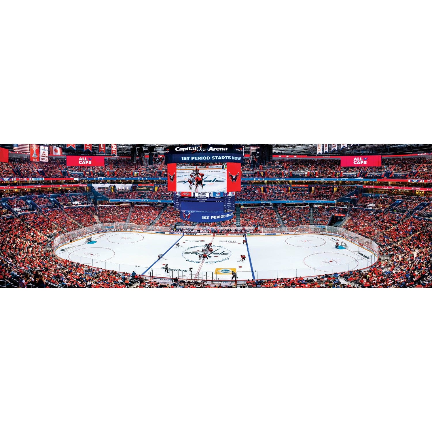 This MasterPieces NHL 1000pc 13" x 39" Panoramic Washington Capitals Puzzle features the view from the sky box seat of the Washington Capitals rink with such incredible detail that it's common for you to find yourself as part of the photograph! To reduce its impact on our environment, the chipboard used in this puzzle is made of 100% recycled material.