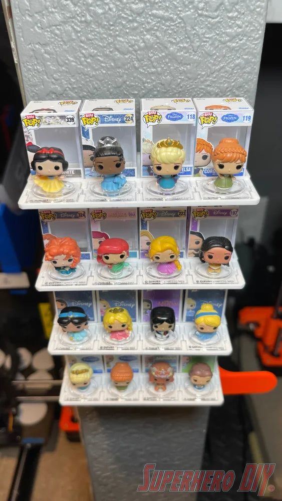 3D-printed in durable PLA plastic, this wall mount fits Funko Pop Bitty Pops of any kind! Made for displaying up to all of your Bitty Funko Pops on one shelf, put your boxes in back and your bitty pop figures in front! You can use just one shelf or multiples to complete your amazing display!
