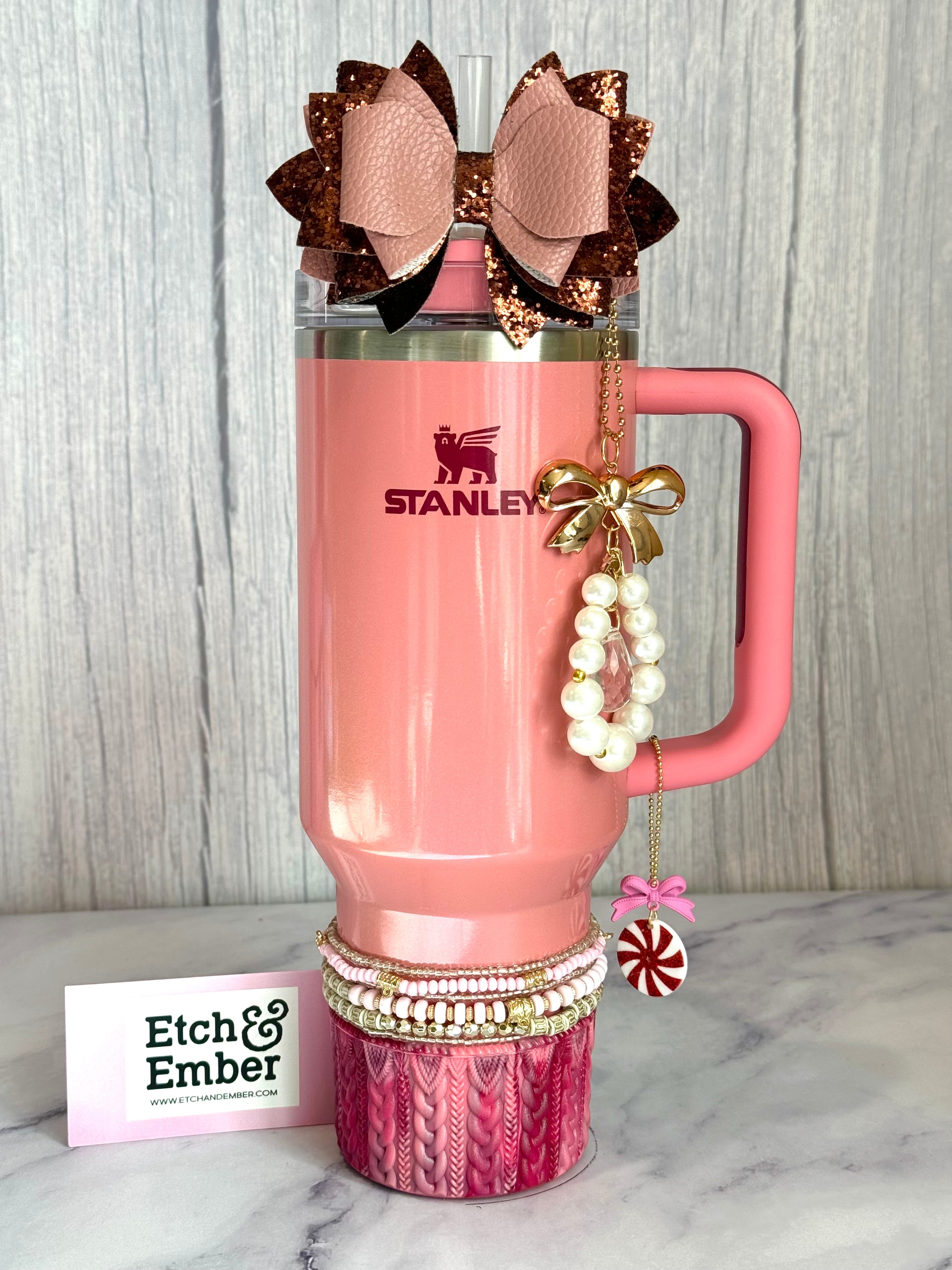 Antique Pink Glitter Tumbler Bow