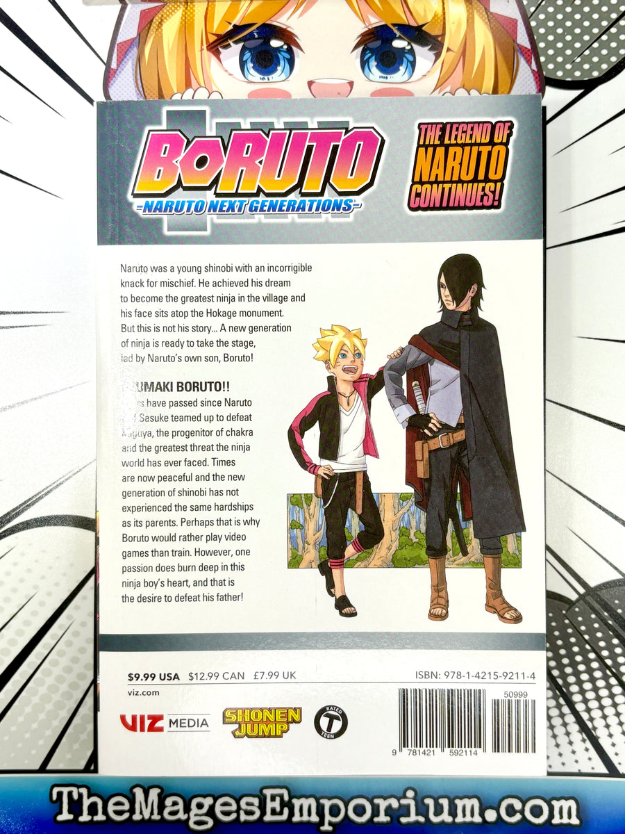 In this first volume, we witness Boruto's journey as he strives to escape the shadow of his father and forge his own path. With the Hidden Leaf Village facing new threats, Boruto finds himself at the center of a sinister plot that could endanger everything he holds dear. Alongside his friends and fellow ninja, Sarada and Mitsuki, Boruto must uncover the truth behind these dark forces and prove his worth as a true shinobi.