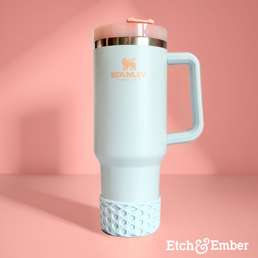 Silicone water bottle boot to prevent scratches on your cup! It also makes it quieter when setting it down and adds a little personality to your favorite accessory. Fits the Stanley Adventure quenchers!