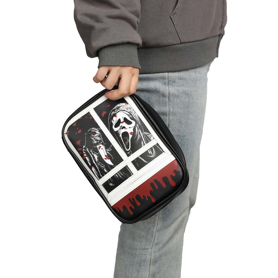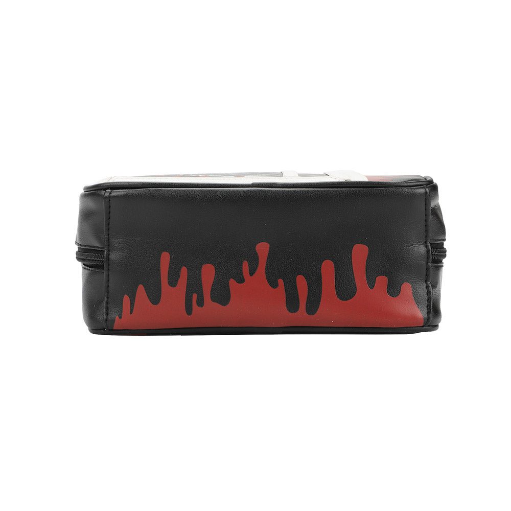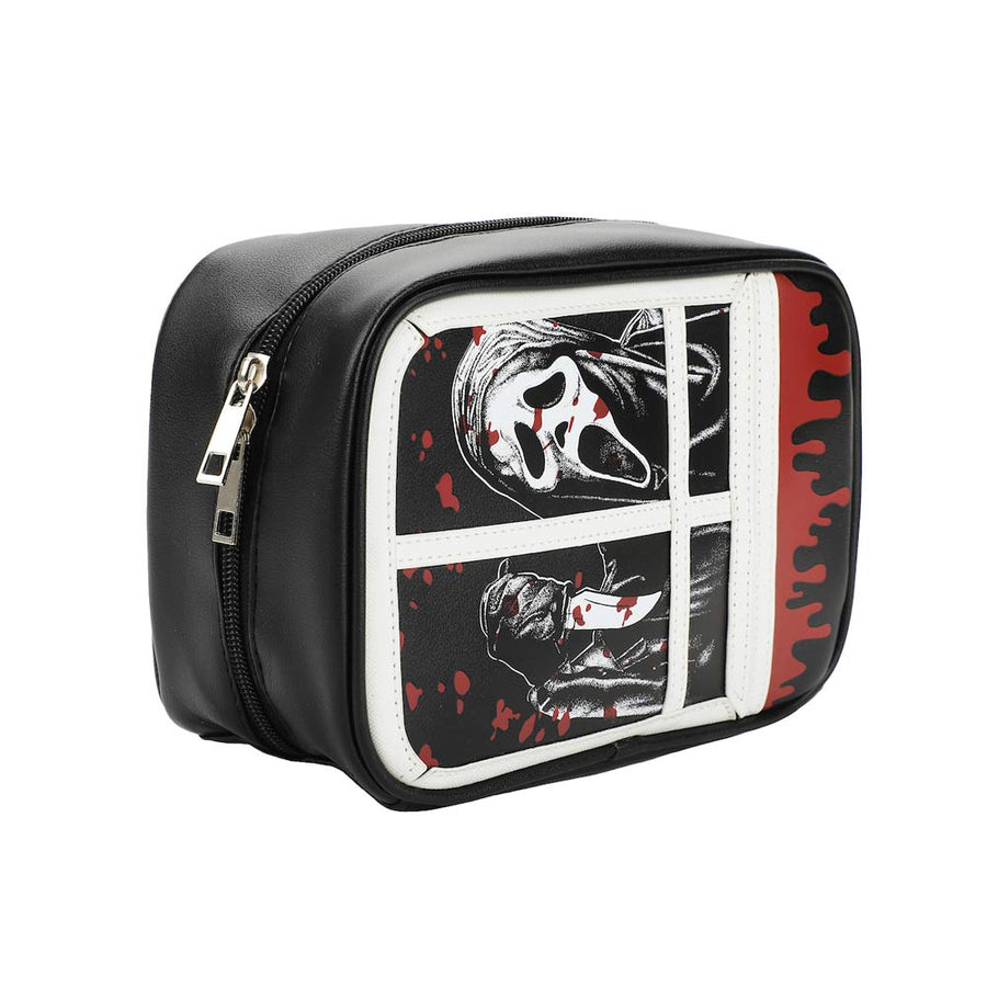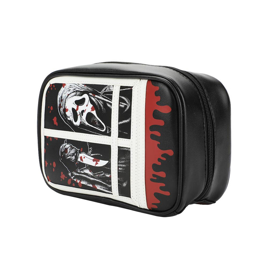This travel cosmetic bag is a scream with a ghostly design and rubber logo. Stay organized with an interior mesh pocket and handle for easy carrying. Zipper closure ensures your essentials don't disappear!