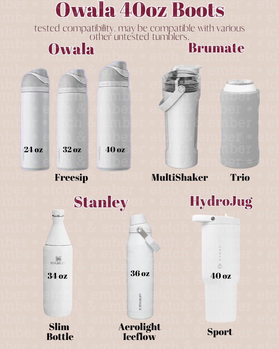 Fits Owala 40oz tumblers and others with a 3.5” base.
