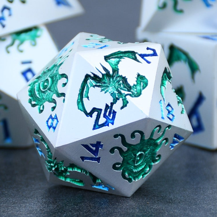 Monster Manual Dice - Silver and Green