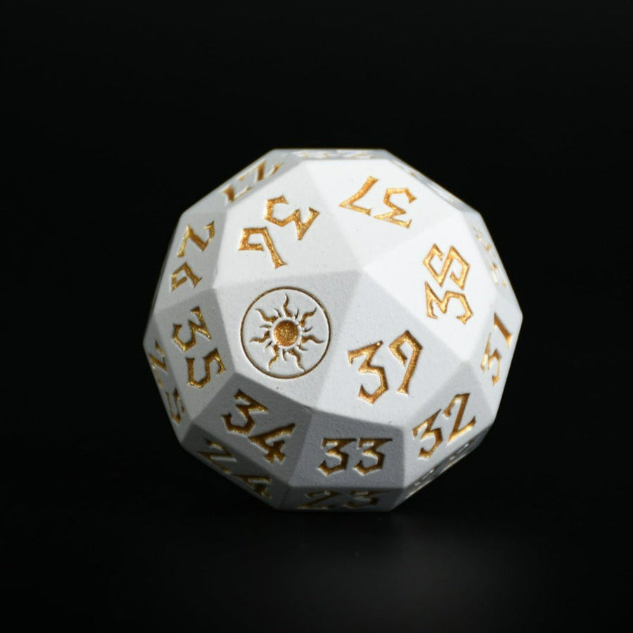Level up your TCG experience with this eye-catching solid-metal spindown life counter! The die is oversized so that the numbers can clearly be seen from anywhere at the table, and the heft of the die lends additional "weight" to each change in your life total.
