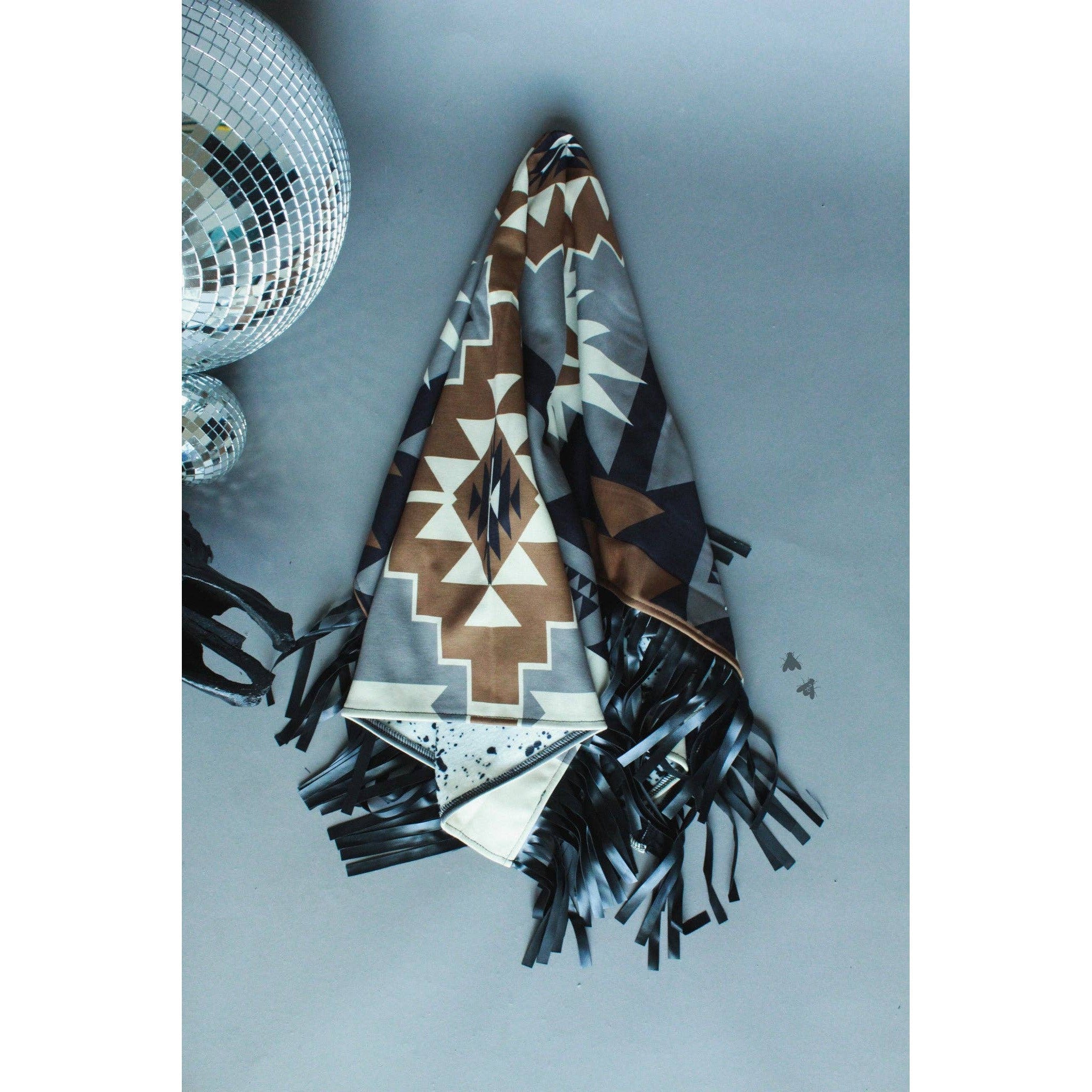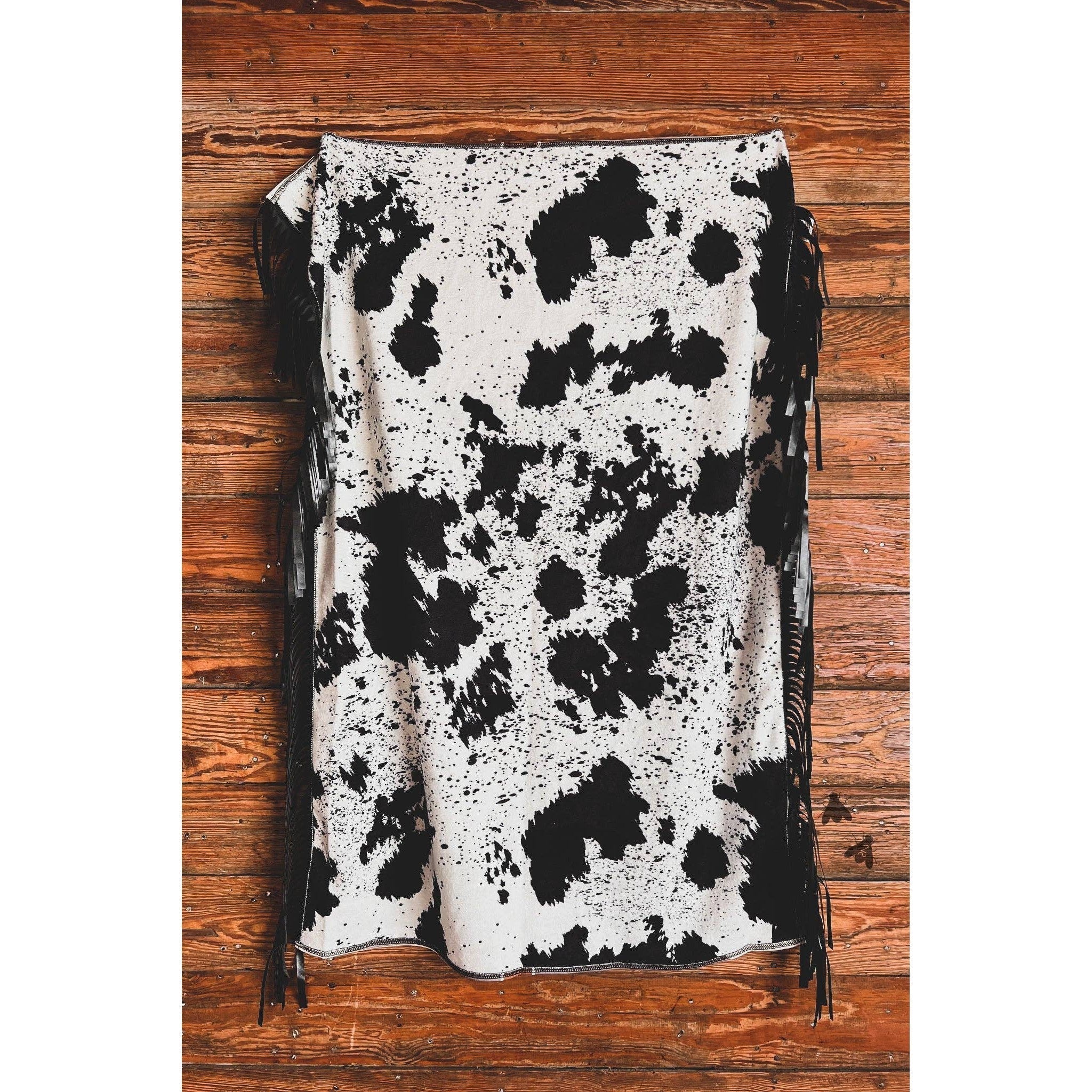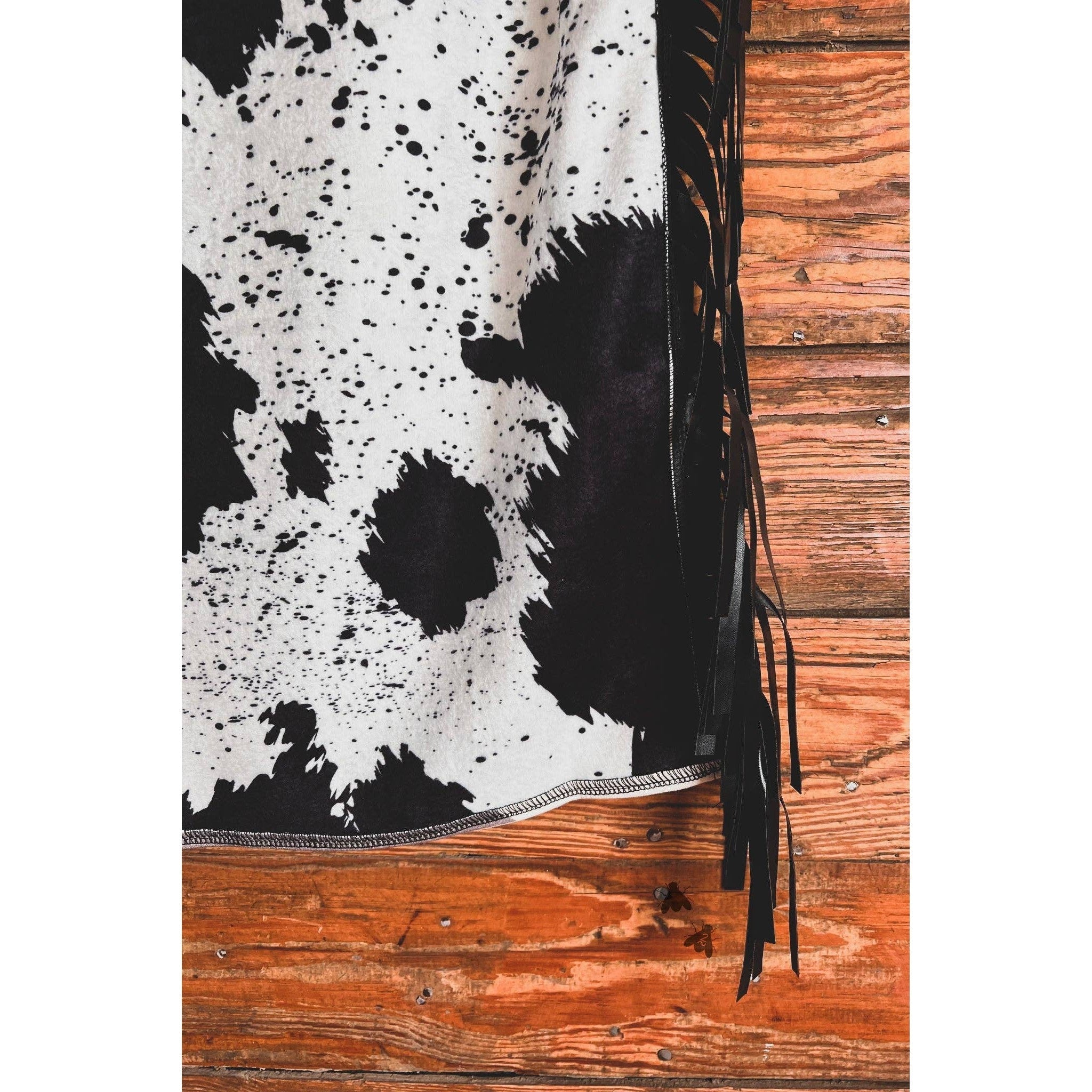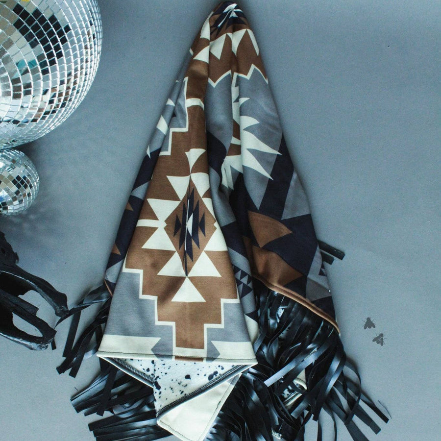 Queen Bee Small Reversible Blanket Throw | Classic Aztec Bold Print + Cowhide Designs with Fringe | 43" x 29"