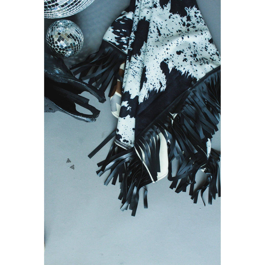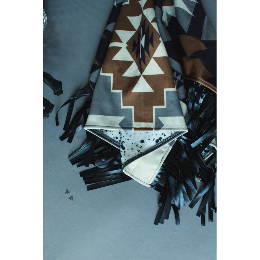 And this hardworking lil blanket can do it twice, with a cute reversible style – Aztec print on one side and cowhide (yeehaw!) on the other.