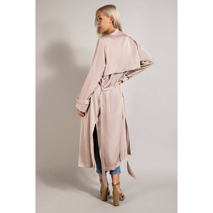 This satin trench coat is a must-have for anyone looking to add a touch of sophistication to their wardrobe.