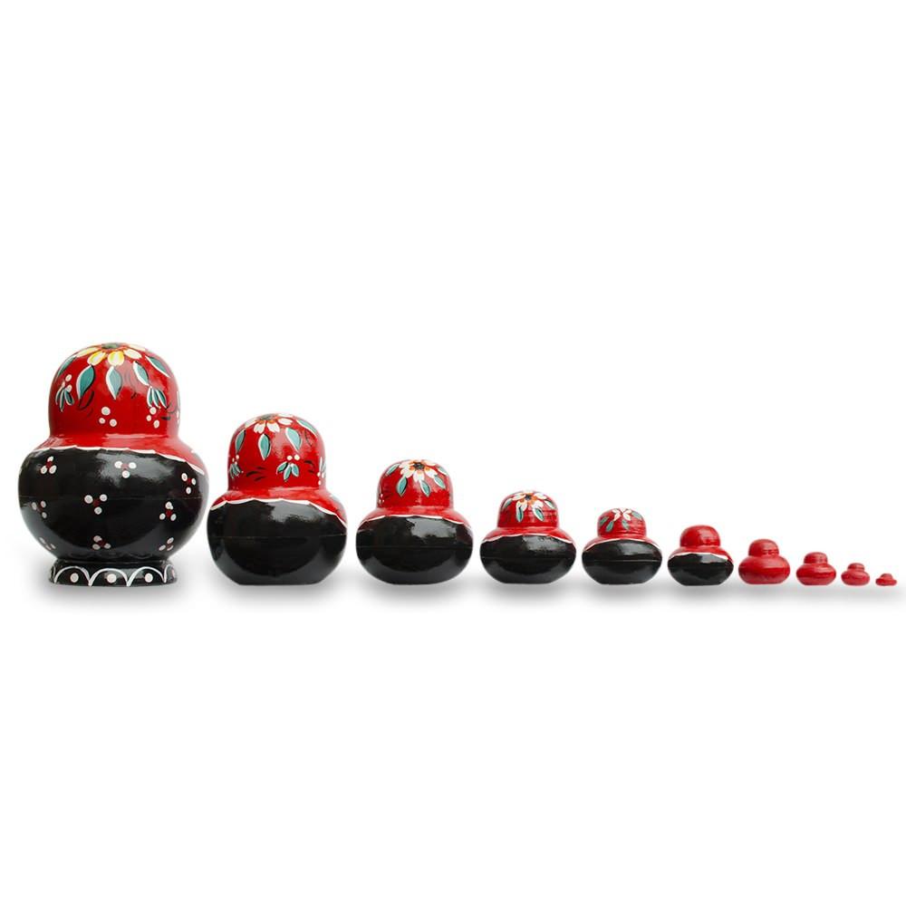 The inimitable painting found on all of our nesting dolls is used here to artistically recall the flowers loveliness. This matryoshka can be a thoughtful gift, appropriate seasonal or year-round decoration, a special addition to an existing collection - or all of the above!