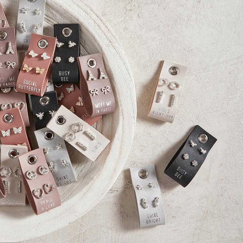 Our best selling leather tag earrings now with double the fun! Includes 2 sets of earrings on a vegan leather tag!