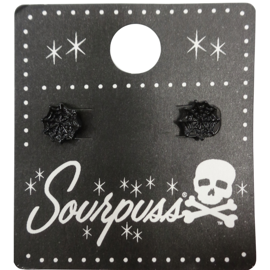Complete your spooky-chic style with the Sourpuss Black Spider Web Earrings. Designed for gothic fashion lovers, these stud earrings add just the right amount of creepy-cute flair to your everyday or special occasion look.