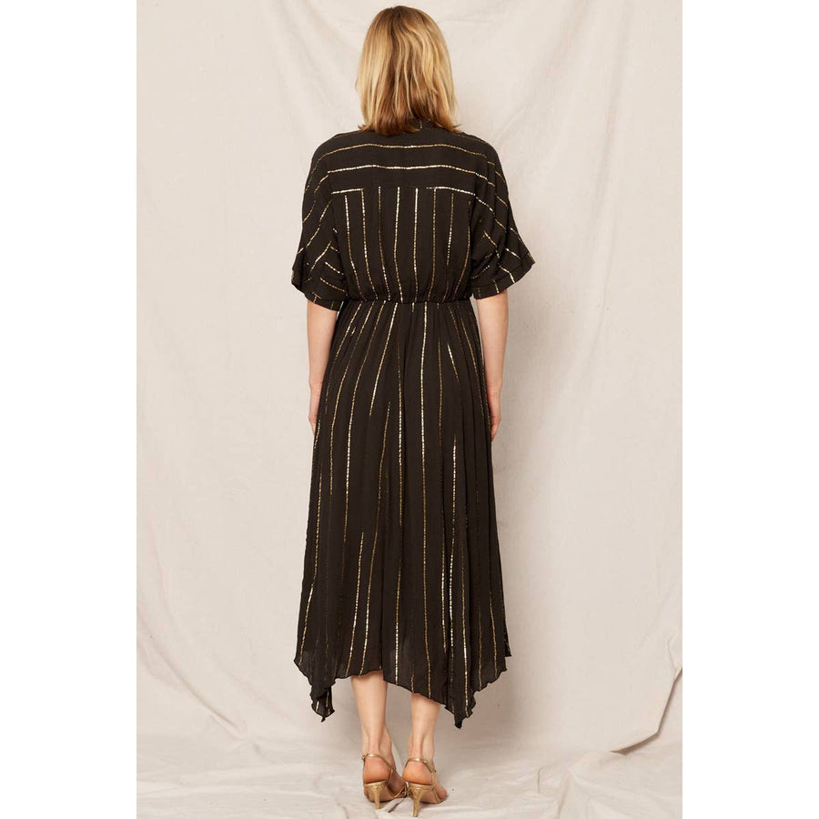 This Midi dress is sure to turn heads and make you feel confident and stylish, featuring a flattering fit and eye-catching sequin stripes.