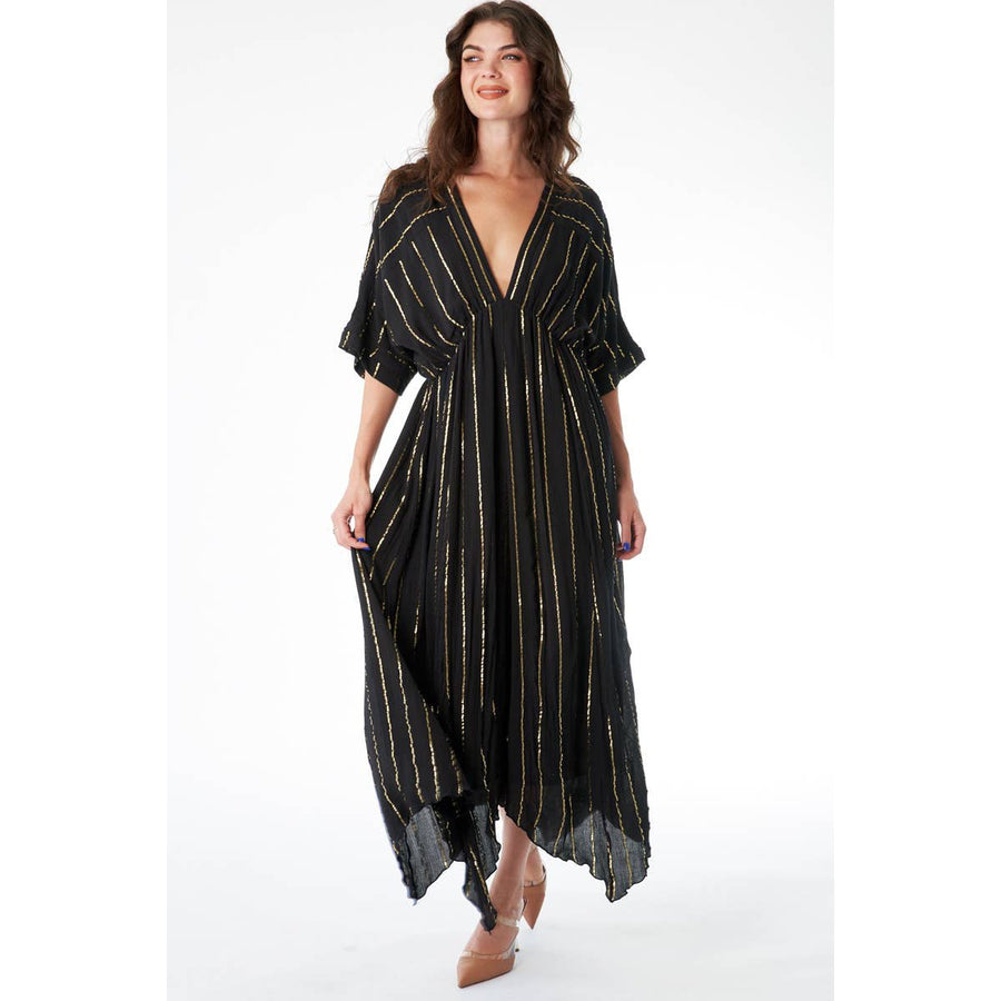 Get ready to sparkle and shine in this stunning Striped Sequin Midi Dress, available in sizes small and medium. Made with 100% rayon fabric and a 100% cotton lining, this dress will have you feeling glamorous and confident at any special event. Looking for a unique and eye-catching gift for a fashion-forward friend? This Sequin Midi Dress by En Crème is the perfect choice for anyone who loves to make a statement with their style.
