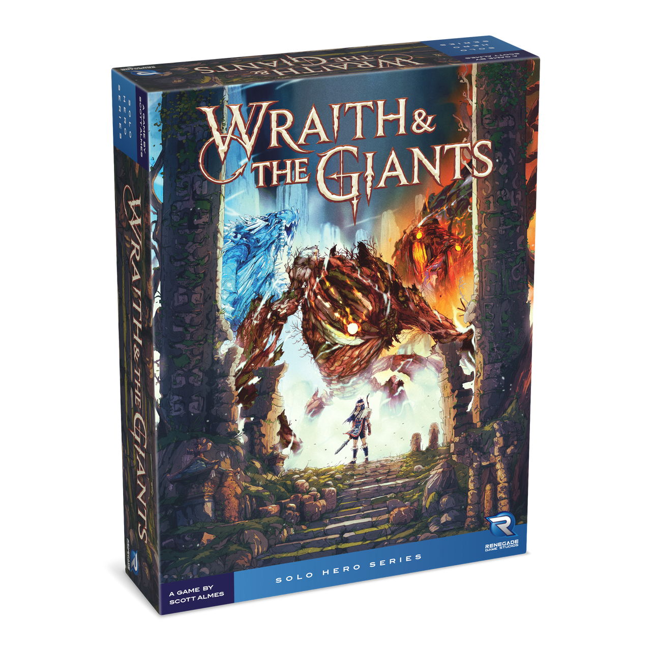 Every 23 years, the giants return—and this time, it’s your turn to stand against them. In Wraith & The Giants, a solo strategy game by award-winning designer Scott Almes (part of the Renegade Solo Hero Series), you take on the role of the Wraith, the latest in a long line of protectors sworn to defend your village from towering elemental titans.