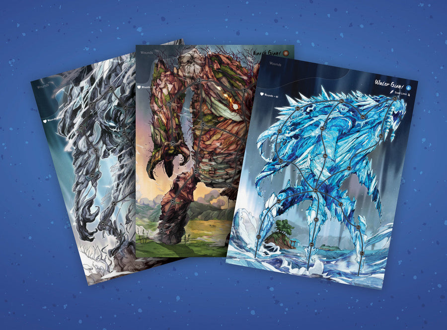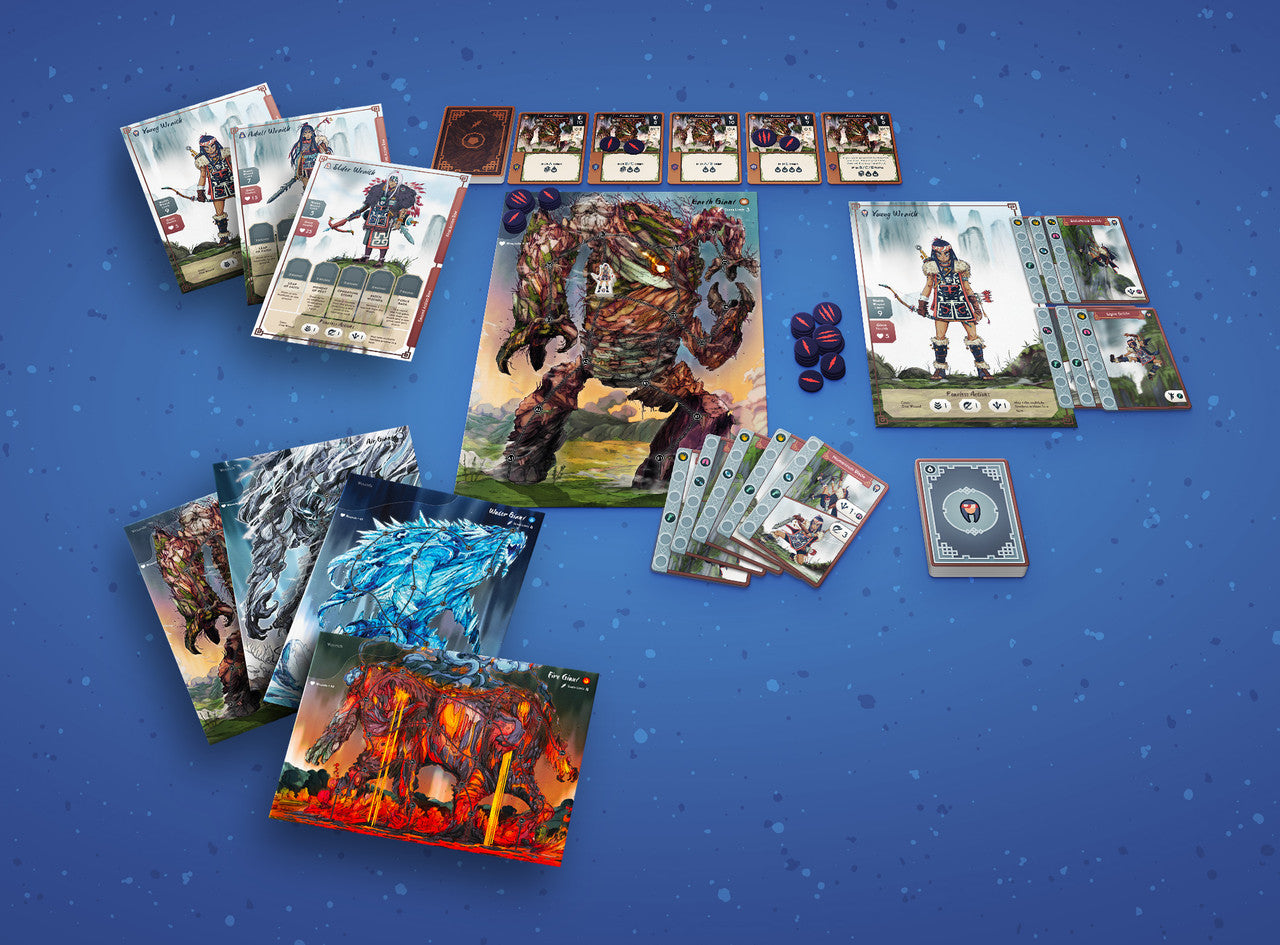 Face four unique giant bosses, each offering new tactical challenges and devastating attacks. Play as the Wraith at three different ages, each with distinct abilities and strategies. Chain powerful card combos, manage your resources, and deliver precise strikes to bring the giants down before they crush everything you hold dear. Featuring a gripping narrative by Bryan C.P. Steele, this solo adventure combines deep gameplay with emotional storytelling and endless replayability.