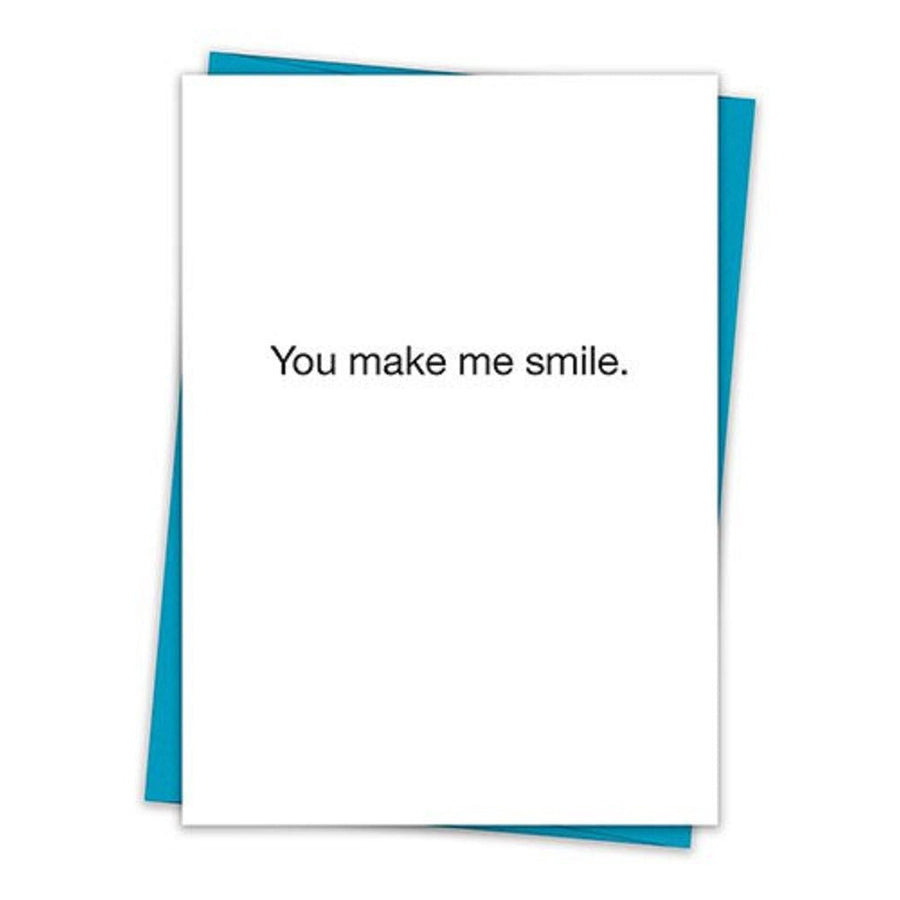 Let someone you love know you're thinking about them by sending this greeting card that reads "You make me smile."