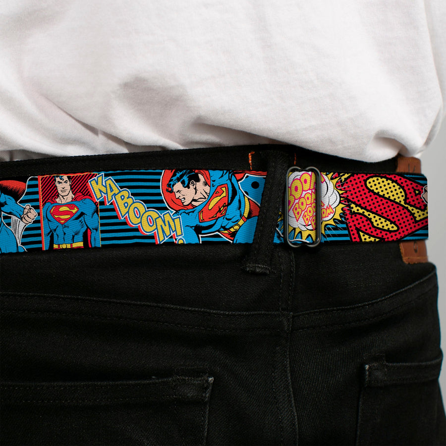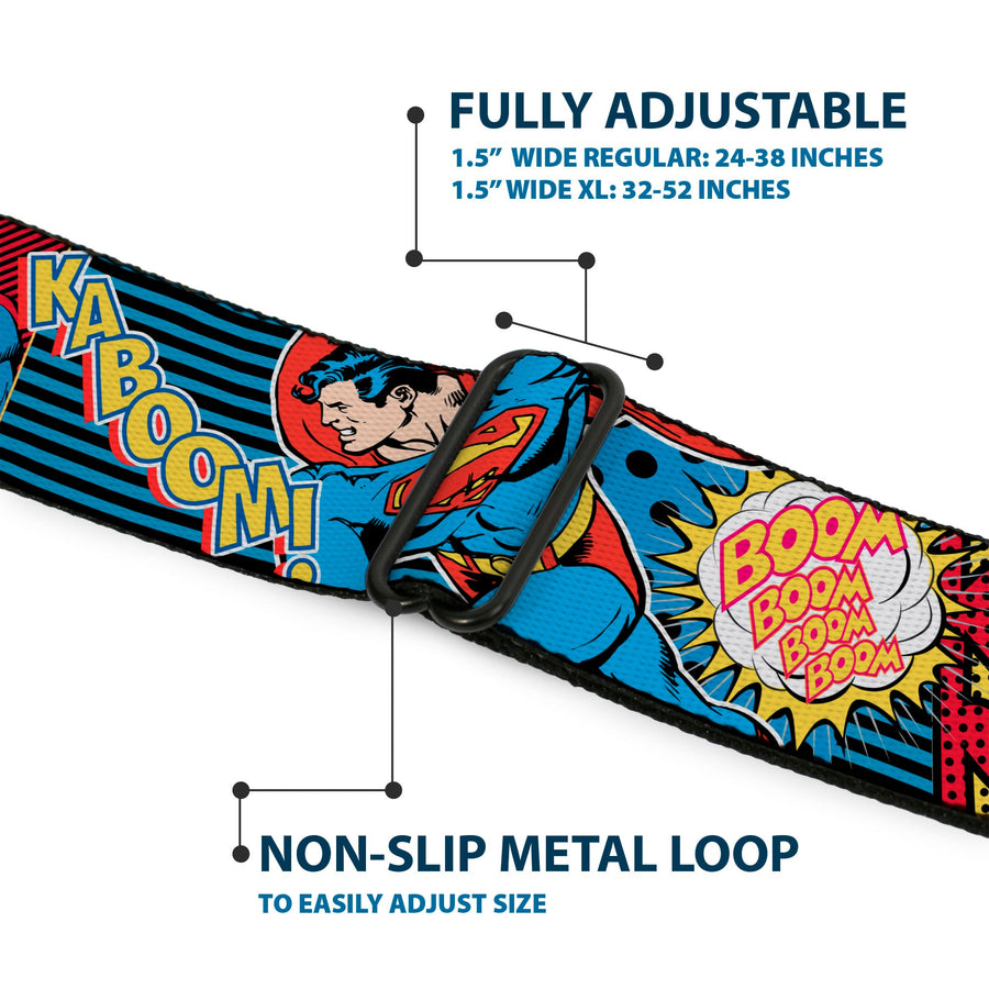 Buckle-Down's iconic Seatbelt Belt is a cool, smart, and exciting blend of fashion and function. Always a conversation starter, our Seatbelt Belt adjusts to perfectly fit your waist while showcasing your unique sense of style. Our Seatbelt Belts are made with authentic automotive style seatbelt buckles making them easy to open and close at the push of a button. Our adult-size Seatbelt Belts are 1.5 inches wide and our kid-sized Seatbelt belts are 1.0 inch wide. This product is Handcrafted in USA by Buckle-Down Inc. and officially licensed by DC Comics.