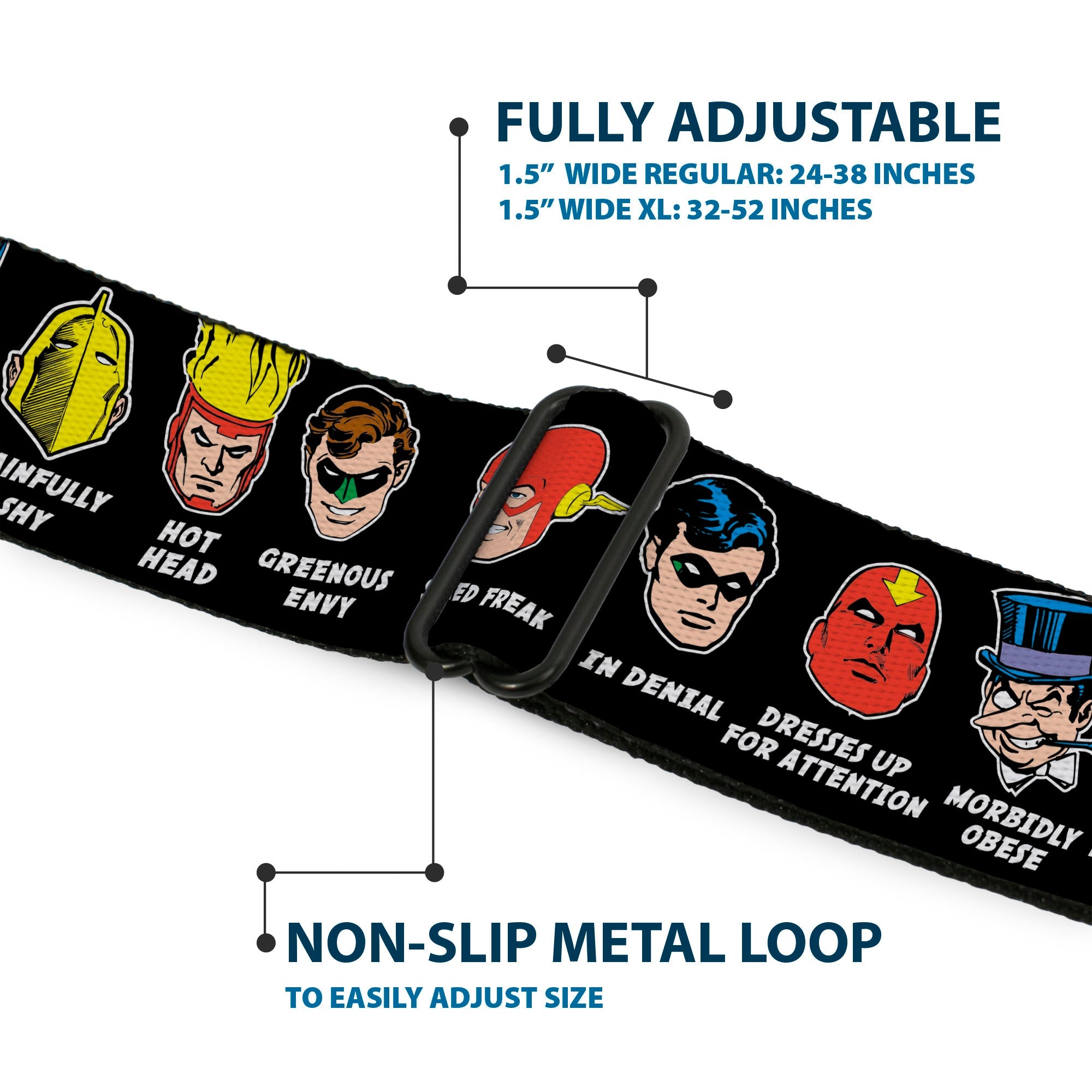 Buckle-Down's iconic Seatbelt Belt is a cool, smart, and exciting blend of fashion and function. Always a conversation starter, our Seatbelt Belt adjusts to perfectly fit your waist while showcasing your unique sense of style. Our Seatbelt Belts are made with authentic automotive style seatbelt buckles making them easy to open and close at the push of a button. Our adult-size Seatbelt Belts are 1.5 inches wide and our kid-sized Seatbelt belts are 1.0 inch wide. This product is Handcrafted in USA by Buckle-Down Inc. and officially licensed by DC Comics.