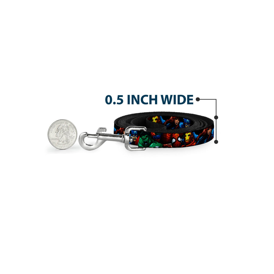 This fashion-forward dog leash is a great way to show off your favorite characters or brands. The durable components and beautiful printing ensure that the colors will continue to pop for years to come! It is made of high-density polyester and steel hardware. The leash is available in 0.5, 1.0 and 1.5 inches wide, and 4 and 6 feet in length. This product is Made in the USA by Buckle-Down Inc. and officially licensed by Marvel Comics.
