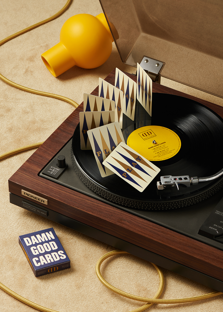 Elevate your card game with Damn Good Cards, No. 7, the latest in Dan and Dave's acclaimed series. This edition showcases a striking retro one-way motif inspired by mid-century print advertising, with the word "Play" elegantly encased in an elongated diamond pattern of contrasting blue and gold ink. Housed in a sophisticated linen-finish tuck box, these cards make a statement before you even begin your performance. The renowned Thin Crushed® stock provides the exceptional handling that both professional magicians and dedicated cardists demand. Each deck contains 56 regulation poker-size cards with standardized faces, clean white borders, and no seal—letting the cards' performance quality speak for itself. Printed in the USA on FSC-certified paper, these cards combine environmental responsibility with uncompromising quality.