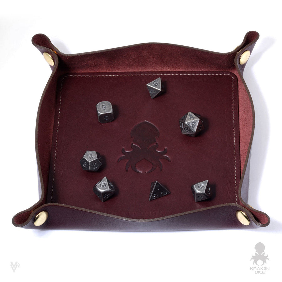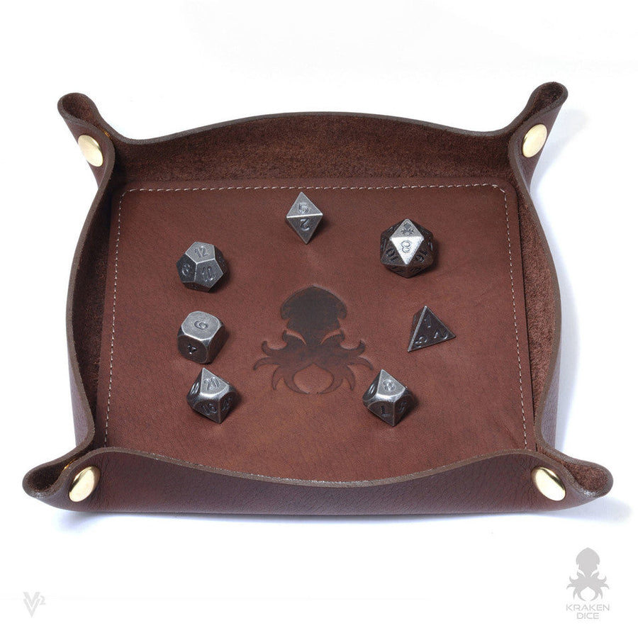 Embossed with our signature Kraken logo, each real leather dice tray is hand crafted in the USA. These trays are perfect for containing the rolls of all of your favorite Kraken dice including our metal Dwarven Craft line, as well as protecting them and your playing surfaces. Note: Since this is natural leather, product shades and textures may vary.