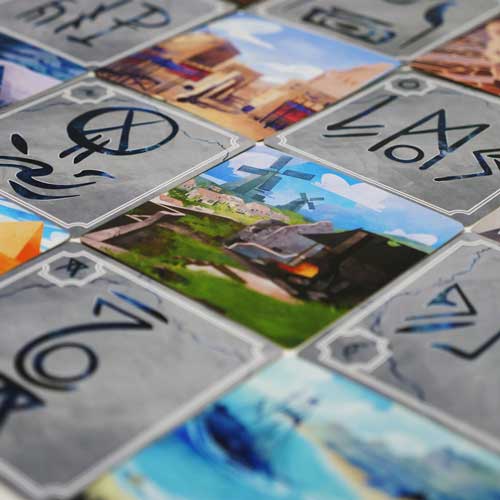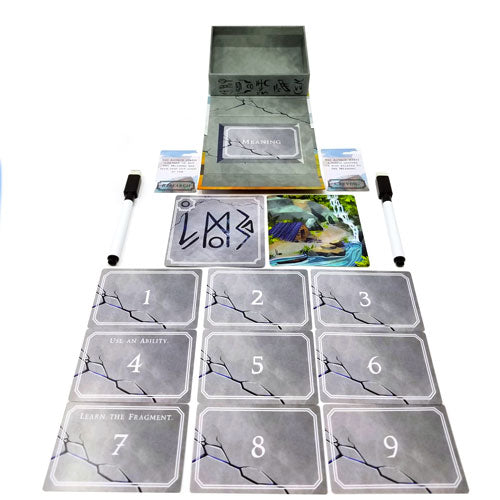 In 1799, the Rosetta Stone helped decipher Egyptian hieroglyphics for the first time in thousands of years. Through creativity and imagination, players can now decode a lost ancient language all on their own, making up and drawing new symbols along the way. Featuring art by the fantastic Micaela Dawn, the game includes two dry-erase felt-tip markers, UV-coated drawing cards, ruined landscapes, and mysterious symbols everything you need to play in a premium travel-sized box with a magnetic folding lid. A cooperative game, play and win as a team including with large groups, classrooms, and over video chat with over 800 possible setups to solve. Build teamwork and challenge the mind with this game of language and meaning for 2 or more archaeologists.