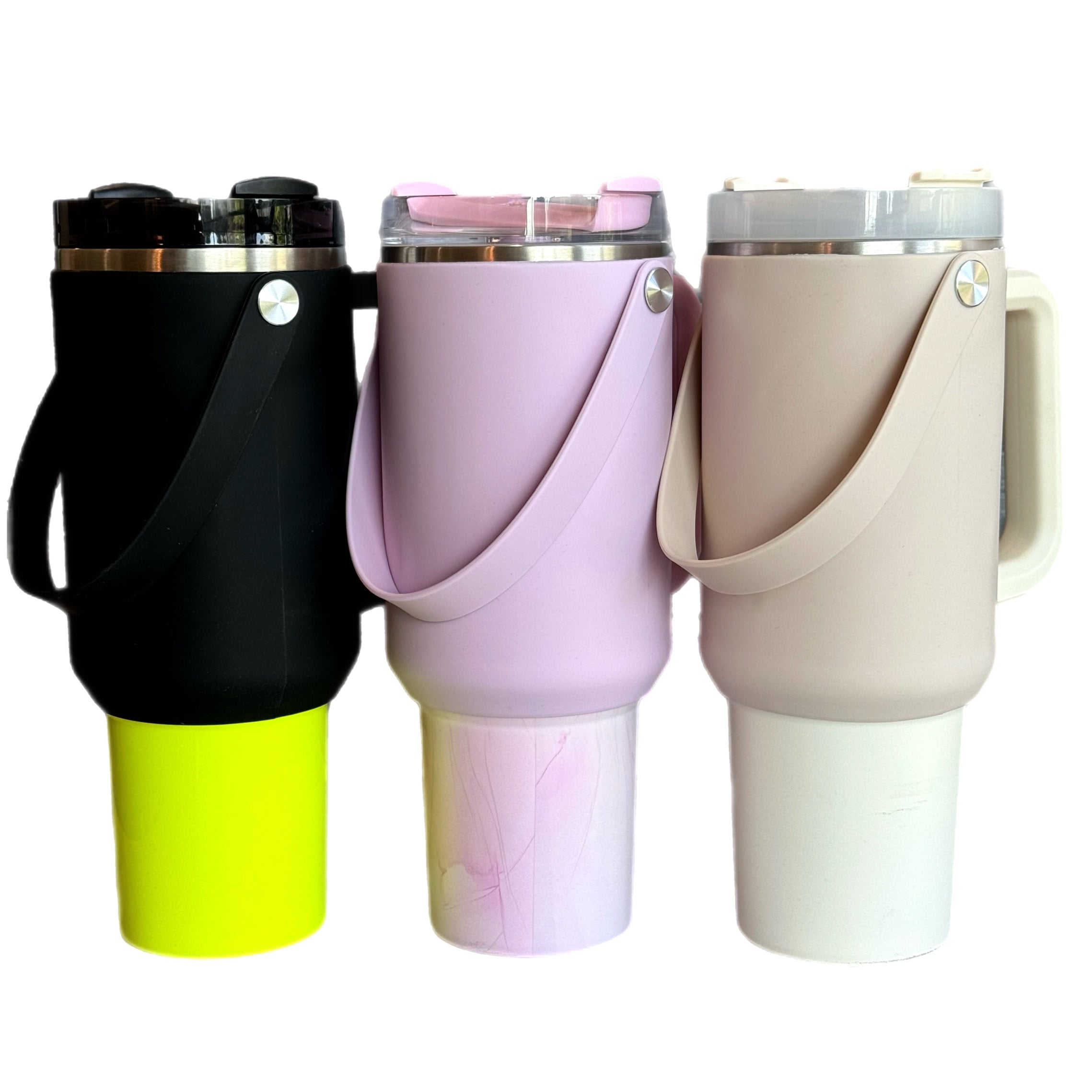 Silicone sleeves with handle to protect your tumbler from scratches. Stretches on and easily holds a full cup. Suitable for 40oz tumblers.