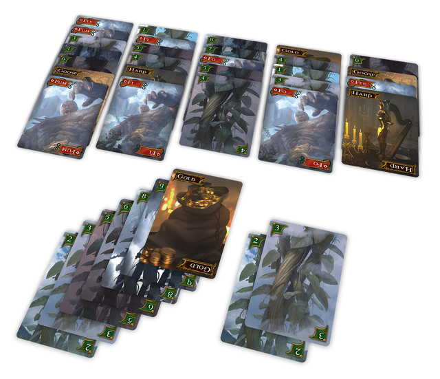 In The Blood of an Englishman, players take on the role of either Jack or the Giant. The Giant must maneuver the Fee Fi Fo and Fum cards while Jack tries to create three bean stalks to steal the bag of gold, the Golden Goose, and the Singing Harp. Each player has different available actions and must carefully arrange the cards to achieve their goal. Are you brave enough to face your fate?