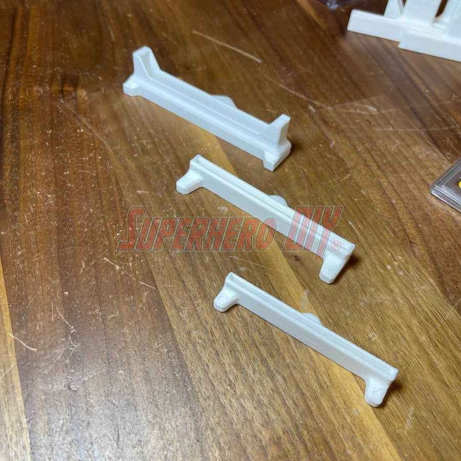 Our products come in a variety of sizes to accommodate all your needs, whether you have graded trading cards, sleeved cards, such as those in Ultra PRO Toploaders, or bare cards. Each stand is meticulously crafted for a snug fit, ensuring your precious cards stay in place while on display.
