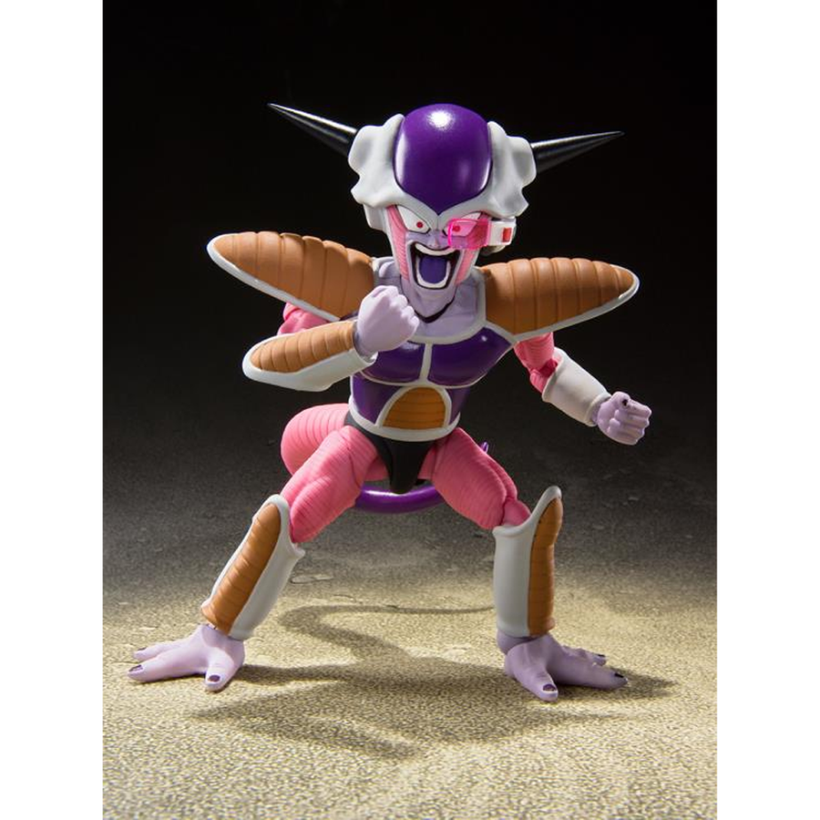 The first form of Frieza and his pod, as envisioned by creator Akira Toriyama, come to life in S.H.Figuarts. Standing a powerful 110mm tall, the figure features all of the poseability fans have come to expect from S.H.Figuarts. A detachable Scouter and Supernova effects let you re-create your favorite scenes. And Frieza's pod, a toy-series first, is rendered in accurate detail. To capture the appearance from the original design, Frieza's upper body can be removed from the figure and be set into the pod.