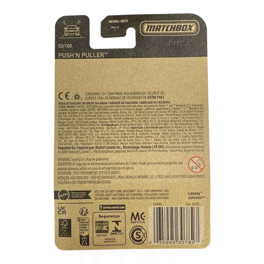 Crafted with quality materials, this toy has stood the test of time, showcasing Matchbox's commitment to excellence over 70 years. The Push 'N Puller is not just a toy; it's a piece of history, embodying the spirit of play and adventure that has been a staple of childhood. Features include: