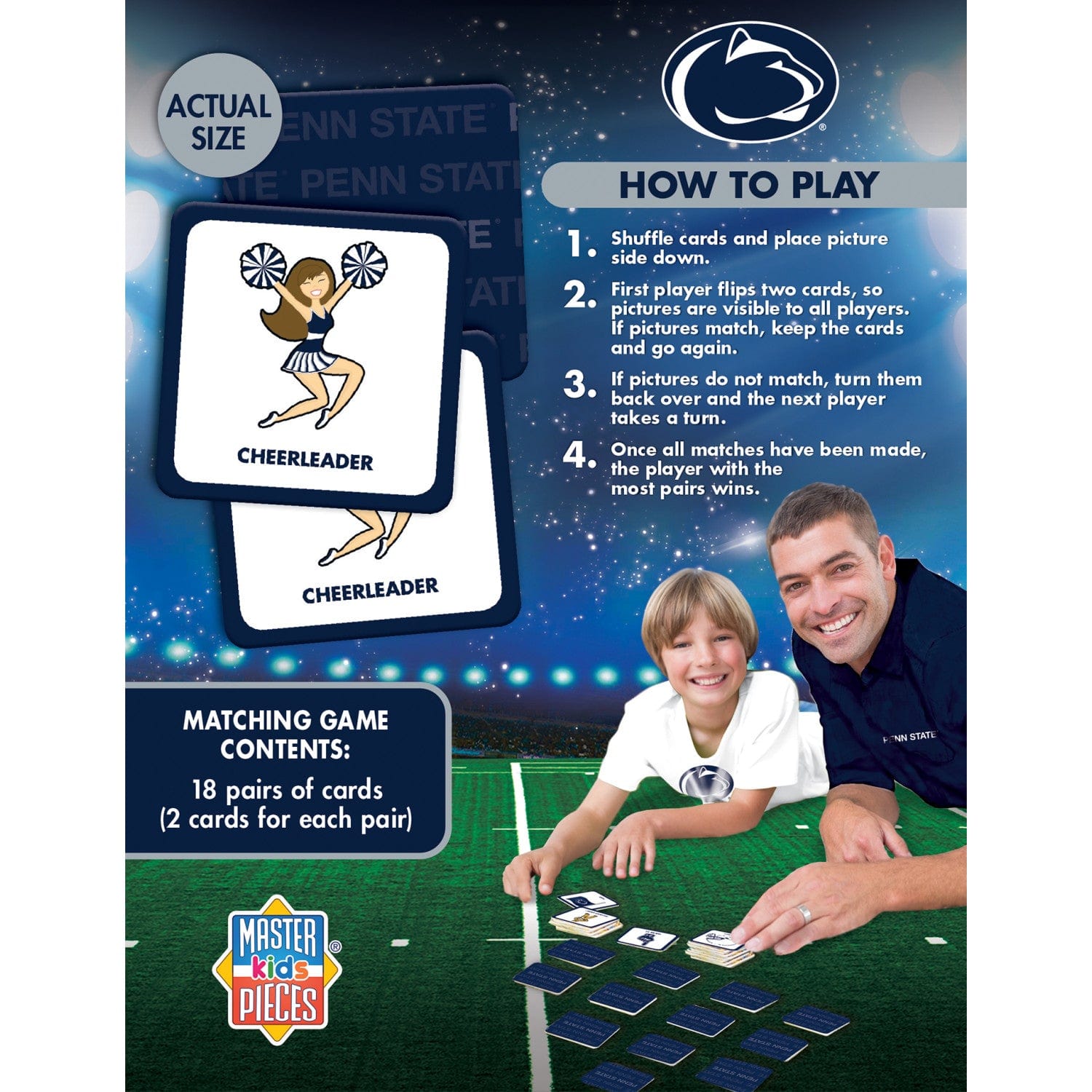 Looking for a fun way to spend some time with the family? Look no further than the NCAA Penn State Nittany Lions Matching Game. This exciting game puts a sports spin on the classic matching game, and is perfect for children, adults, and families of all ages. With 18 unique pairs of symbols, it's sure to keep you entertained for hours on end. Plus, the officially licensed NCAA picture cards are made with high-quality stock for durability and lasting enjoyment. So grab a partner and get ready to test your memory and sports knowledge with the NCAA Penn State Nittany Lions Matching Game!